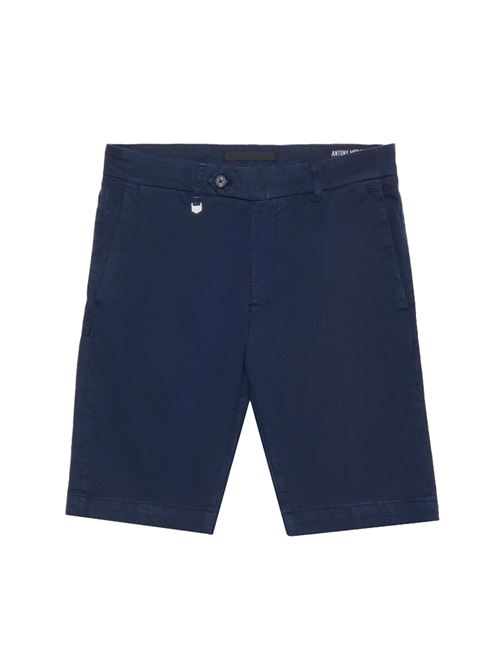Shorts with a skinny fit, made of soft elastic cotton twill. Offered in a solid colour, they feature a design with a central pleat and a pleat stitched on the bottom: style details that define the mood of this model. The side pockets, the iconic logoed metal plate applied to the belt loop and the zip with asymmetric button at the waist that adjust the closure complete the garment.