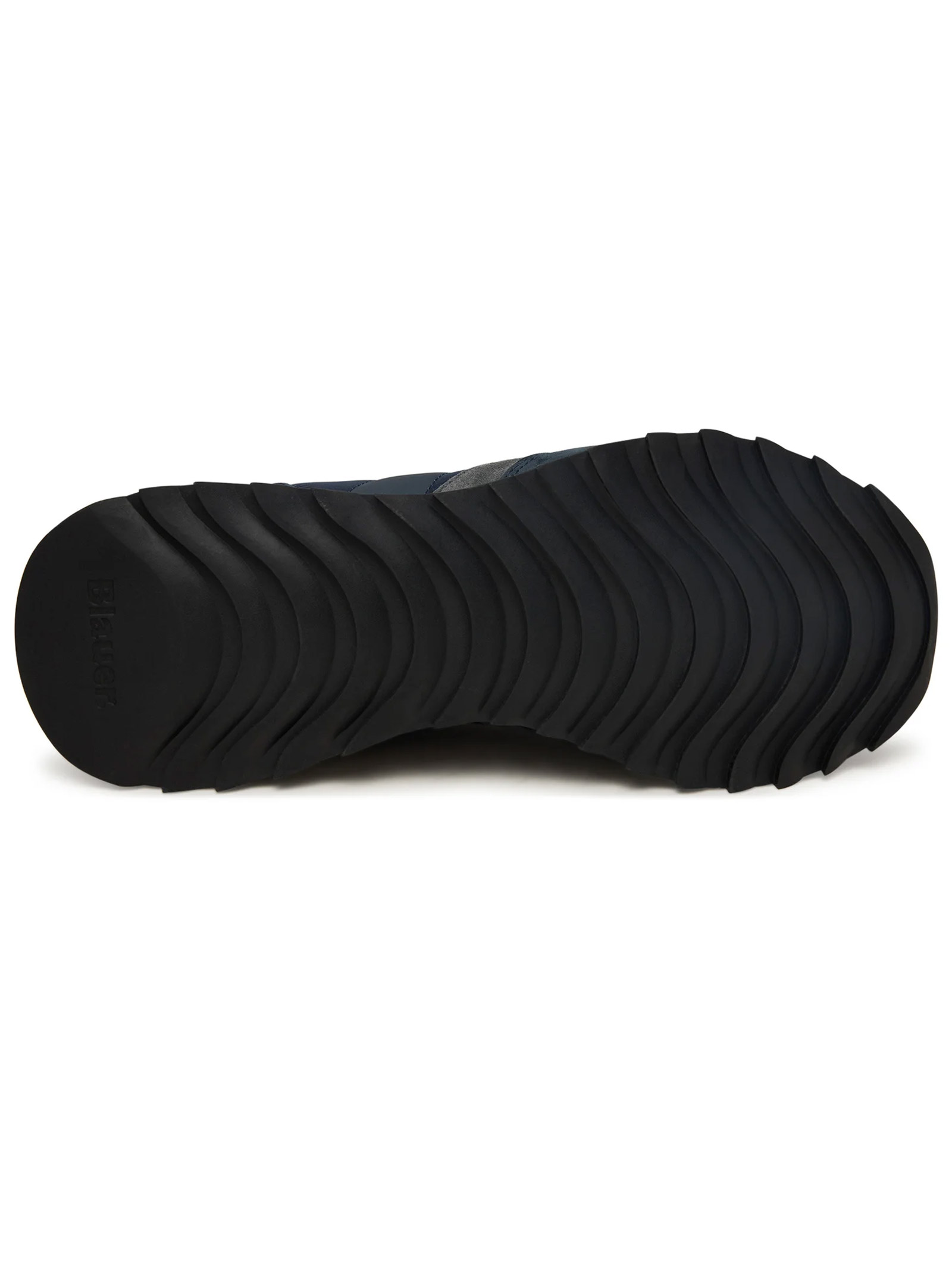 RYDER sneakers with a sporty design and a vintage touch. The upper combines different materials with a balanced color effect, and the Blauer logo is visible on the side and tongue. The EVA sole with contrasting elements is serrated for a dynamic look. The rubber outsole ensures grip and durability. Perfect for a casual and polished outfit.