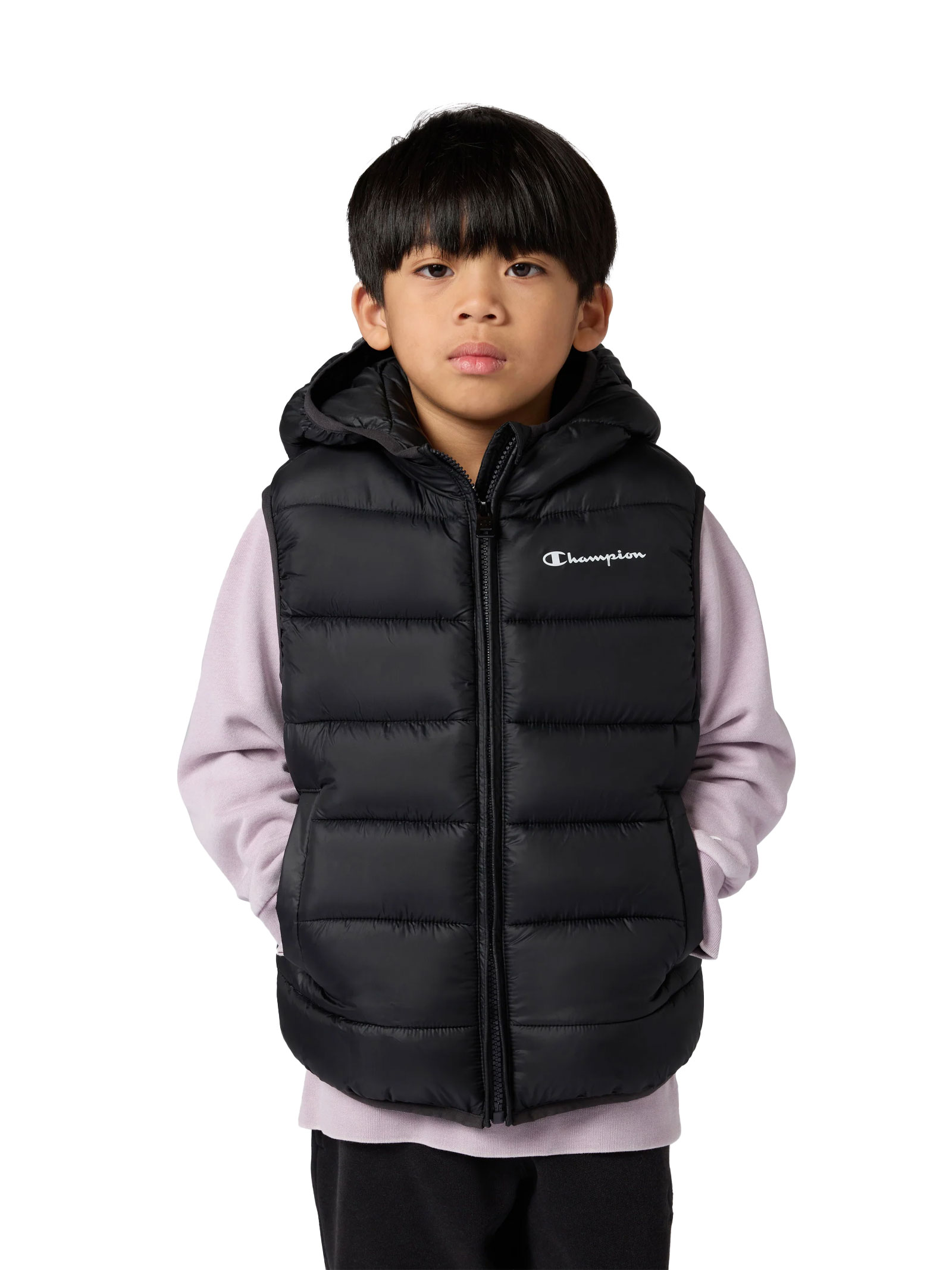 Padded hooded full-zip vest for kids Black