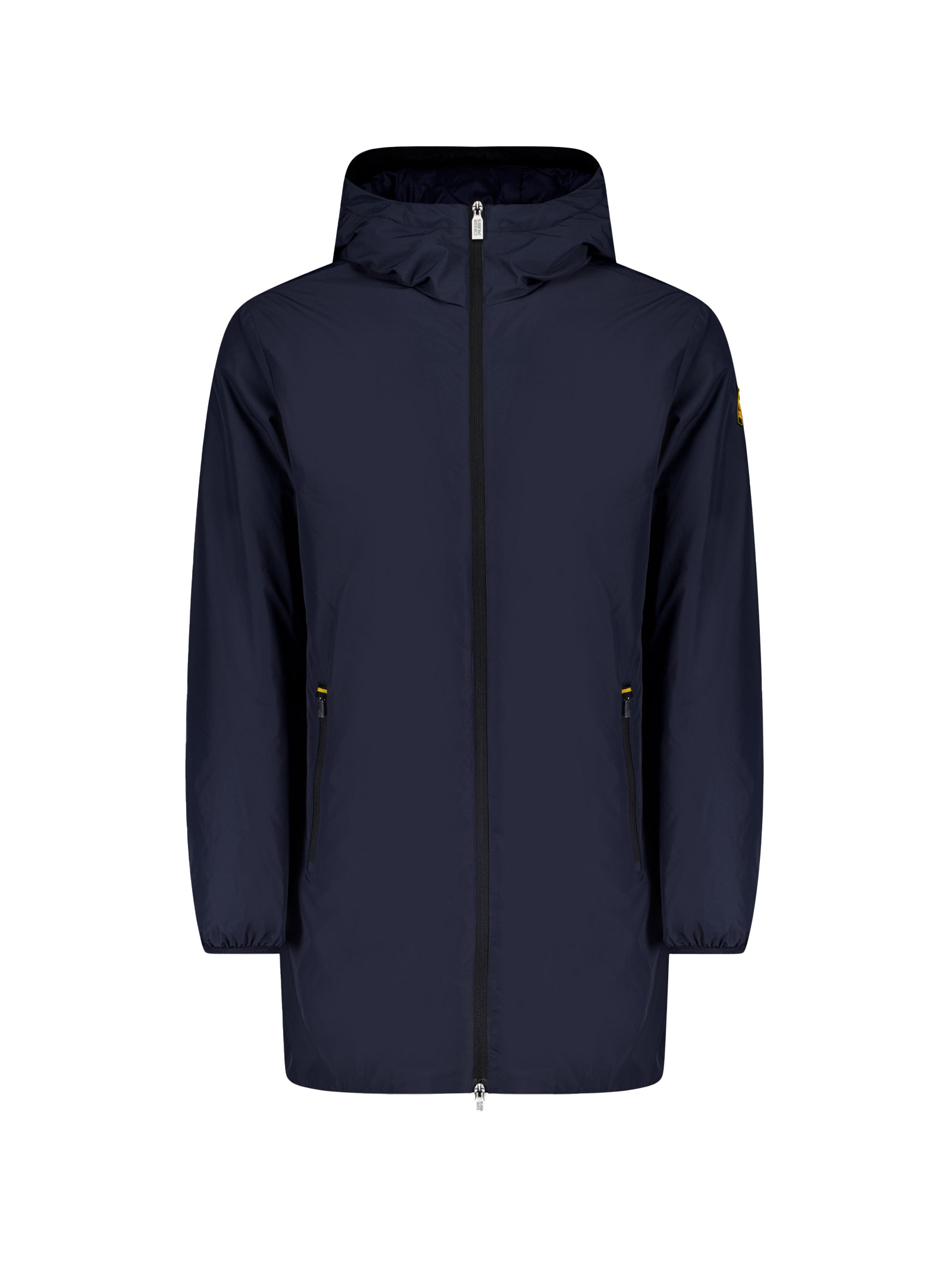 Long blue jacket with hood, ideal from city streets to nature, perfect from autumn to spring.