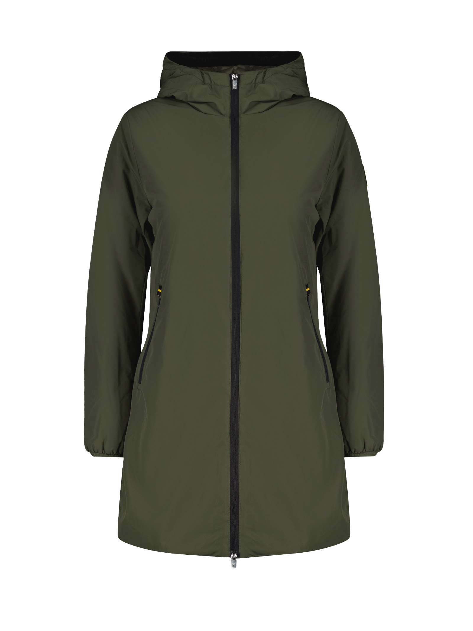 Long padded jacket with hood, made of poly taslan fabric: durable, lightweight, and treated with DWR for effective protection against the elements. The 80-gram padding provides warmth and comfort.