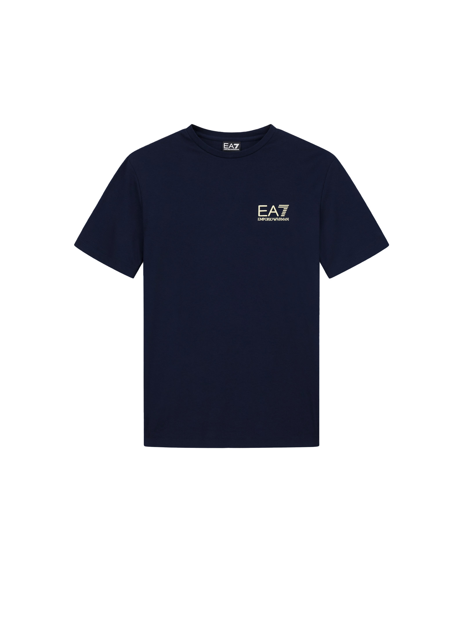 Essential slim-fit crew-neck T-shirt made from stretch viscose blend. A short-sleeve model perfect for casual wear, featuring the EA7 logo on the chest. The Gold Label line offers a more refined and elegant style, with comfortable fabrics and the signature gold detailing for a sporty-chic look.