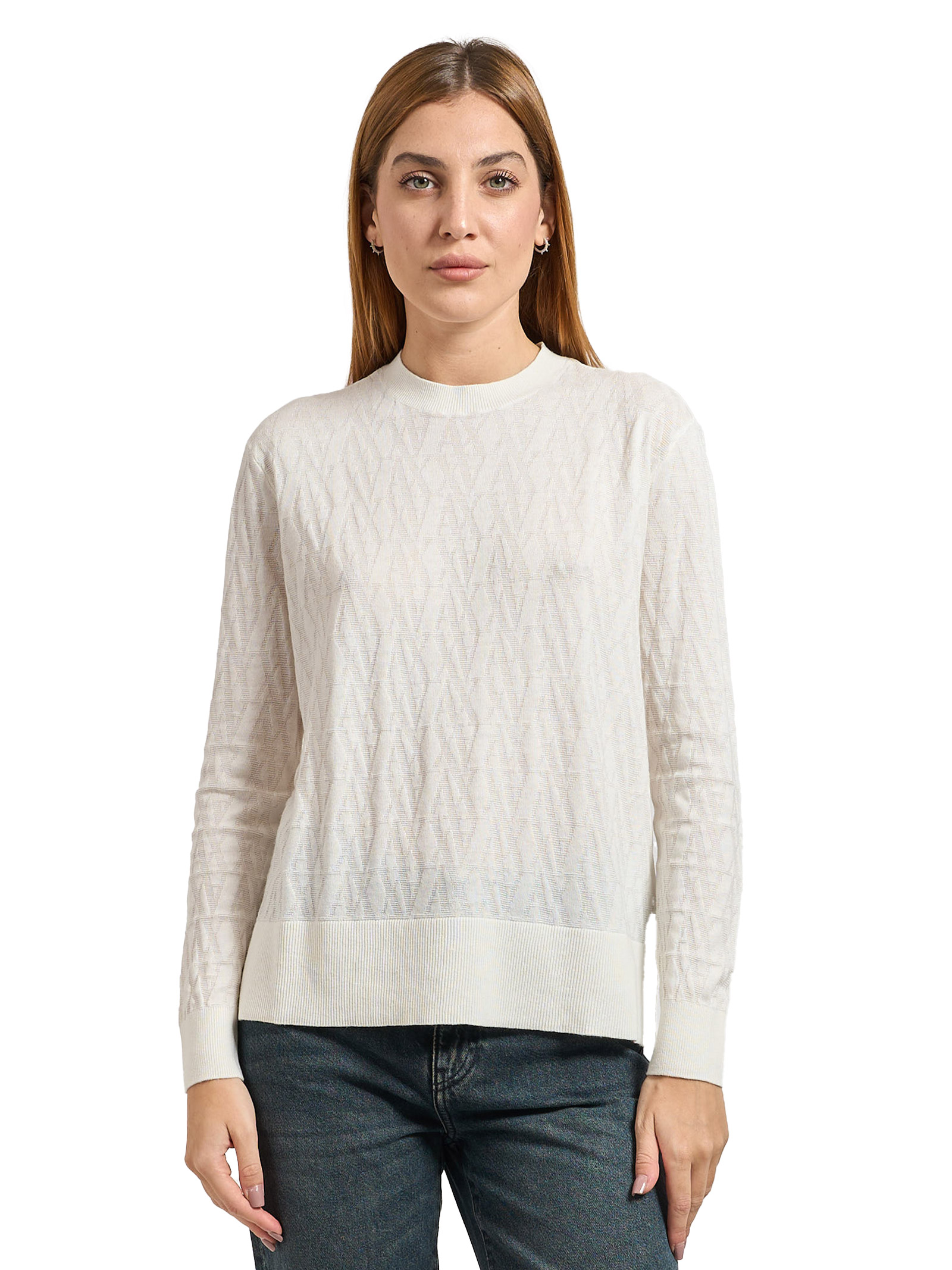 This womens crewneck sweater from ARMANI EXCHANGE is made from a lightweight, soft, and comfortable fabric. The minimalist design features a classic crew neckline with ribbed finishes on the collar, cuffs, and hem. The tone-on-tone jacquard logo pattern adds an elegant detail without weighing down the silhouette.