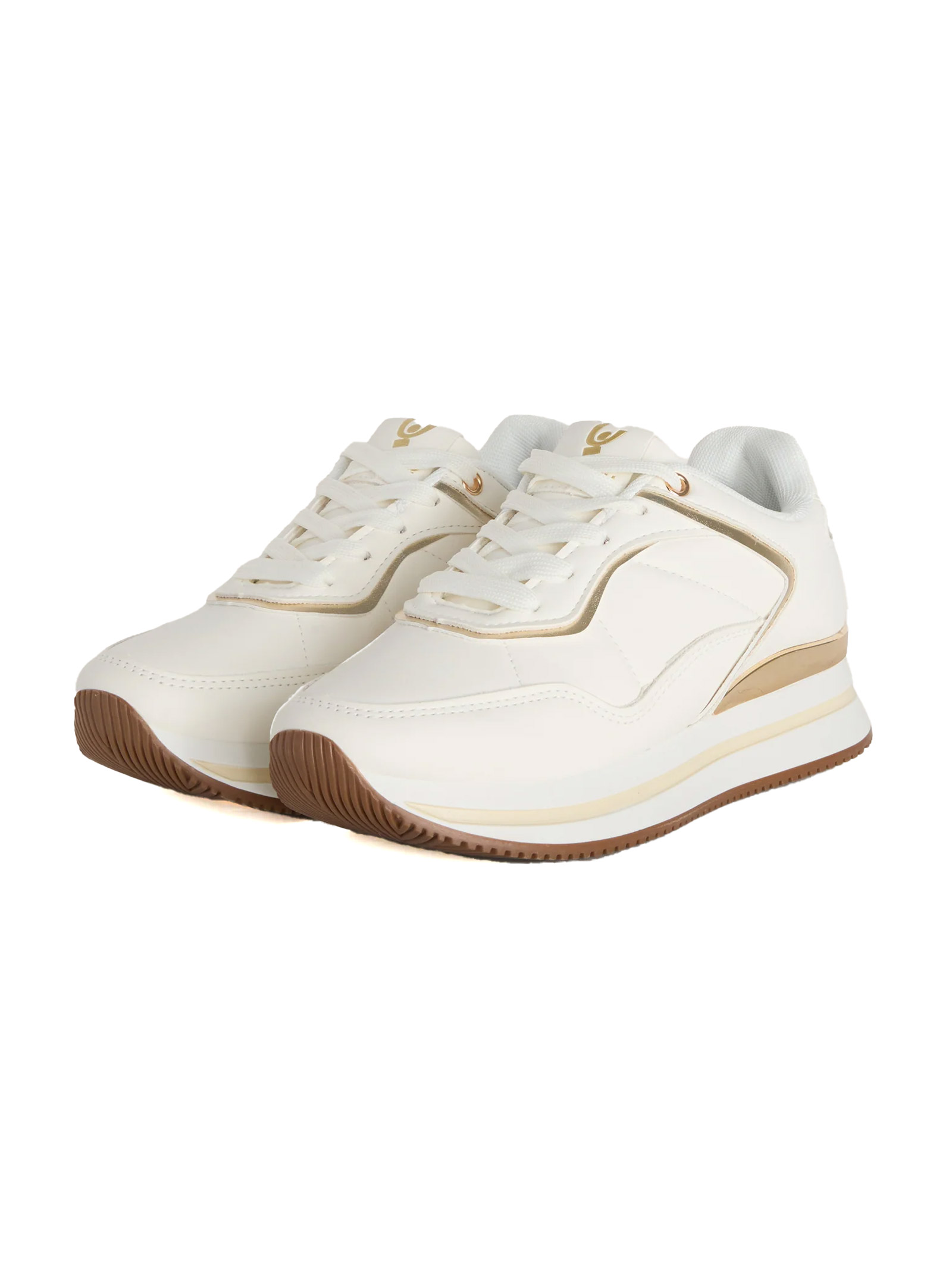 These sneakers combine style and comfort for any time of the day. Featuring a faux leather upper with metallic accents, they are enriched with fabric laces and metallic eyelets for a modern look. The removable memory foam insole ensures optimal comfort, while the non-slip rubber outsole provides perfect stability. The metallic Freddy logo on the heel and tongue adds a distinctive touch. Perfect for completing your everyday outfit with a hint of elegance.