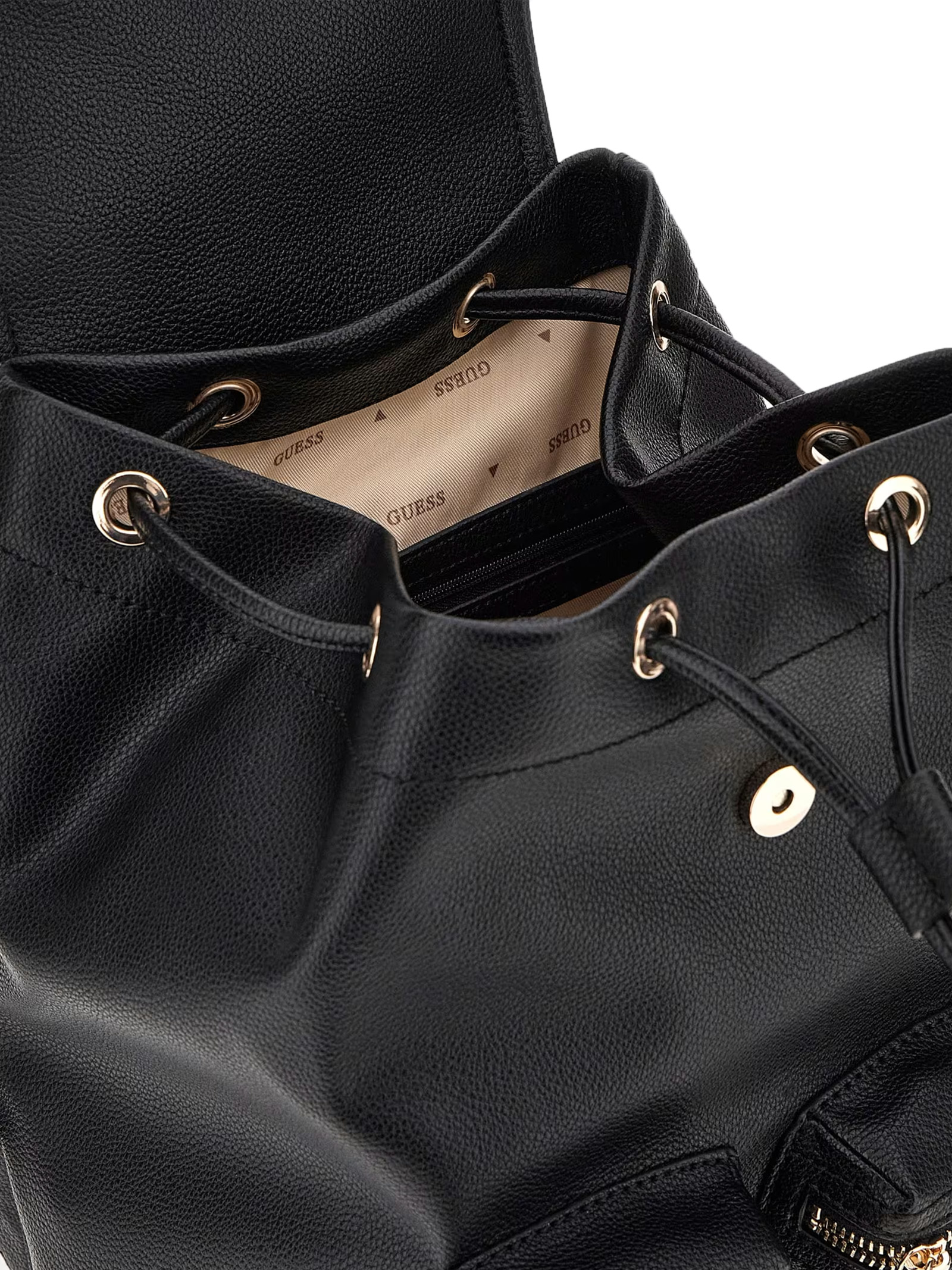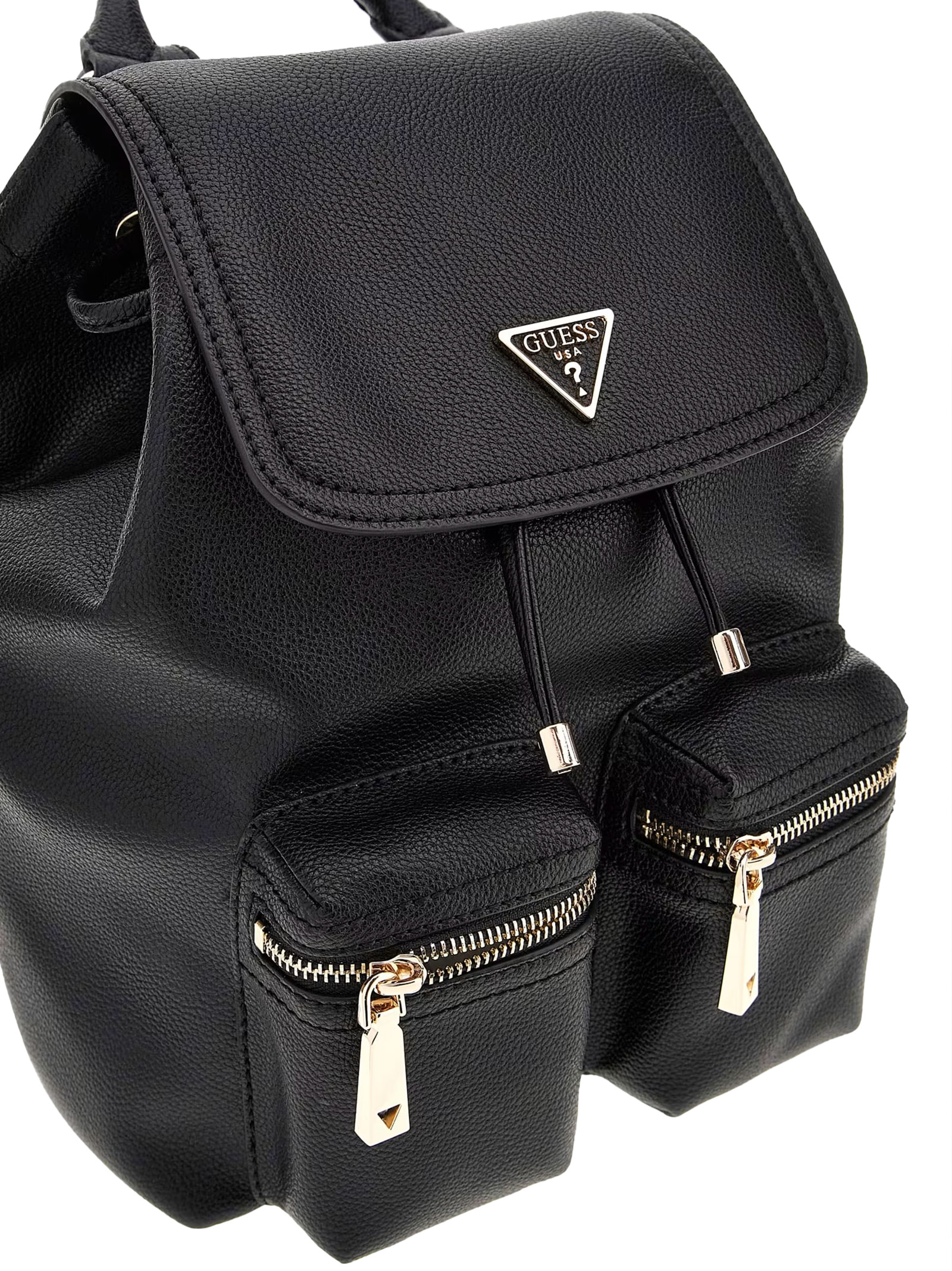 Drawstring and flap closure.