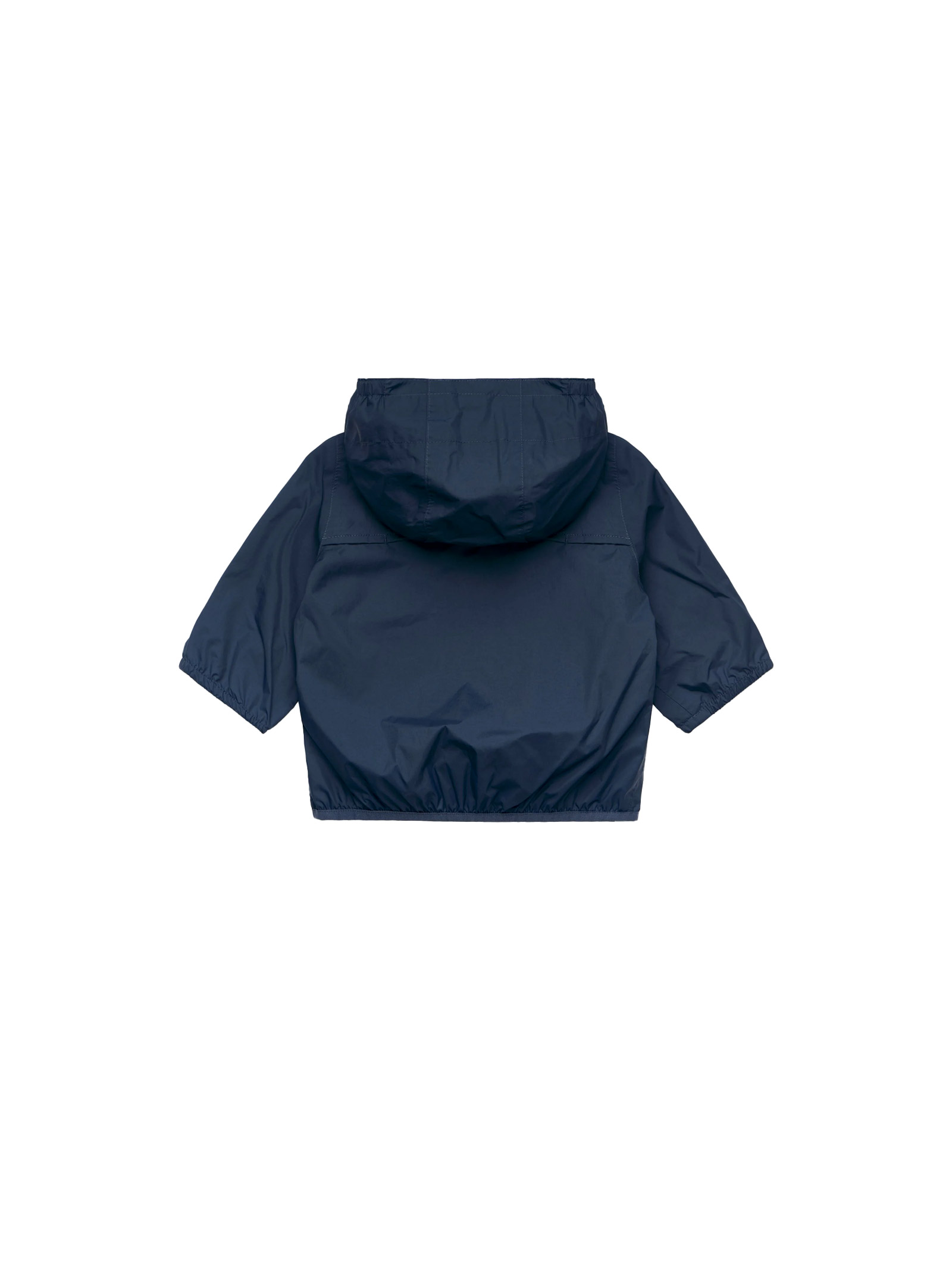Claudine is the iconic short K-Way jacket for babies and very young children. This unisex model is made from innovative micro ripstop 4.0 fabric, 100% recycled, offering enhanced water resistance and breathability thanks to its 10K waterproof rating and 10K breathability. Heat-taped inner seams provide excellent protection from the elements. The key feature of the jacket is its compact size when folded and stored in one of its two pockets. Perfect to always carry in a school backpack or for trips, it is designed to handle sudden rain or wind with ease.