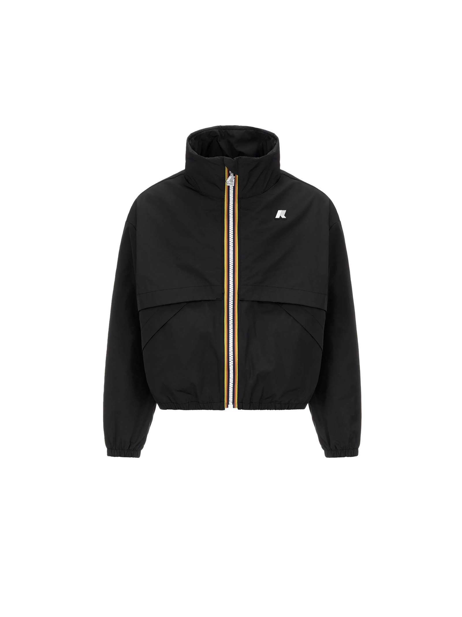 Aubette is a short girls jacket with a design that pays tribute to the brands sporty spirit, thanks to its smooth rubberized fabric and cropped cut with bold details such as maxi pockets and large front flaps. The jacket features a K-Way color zip closure, high collar, elastic cuffs, and an adjustable waist with drawstring.