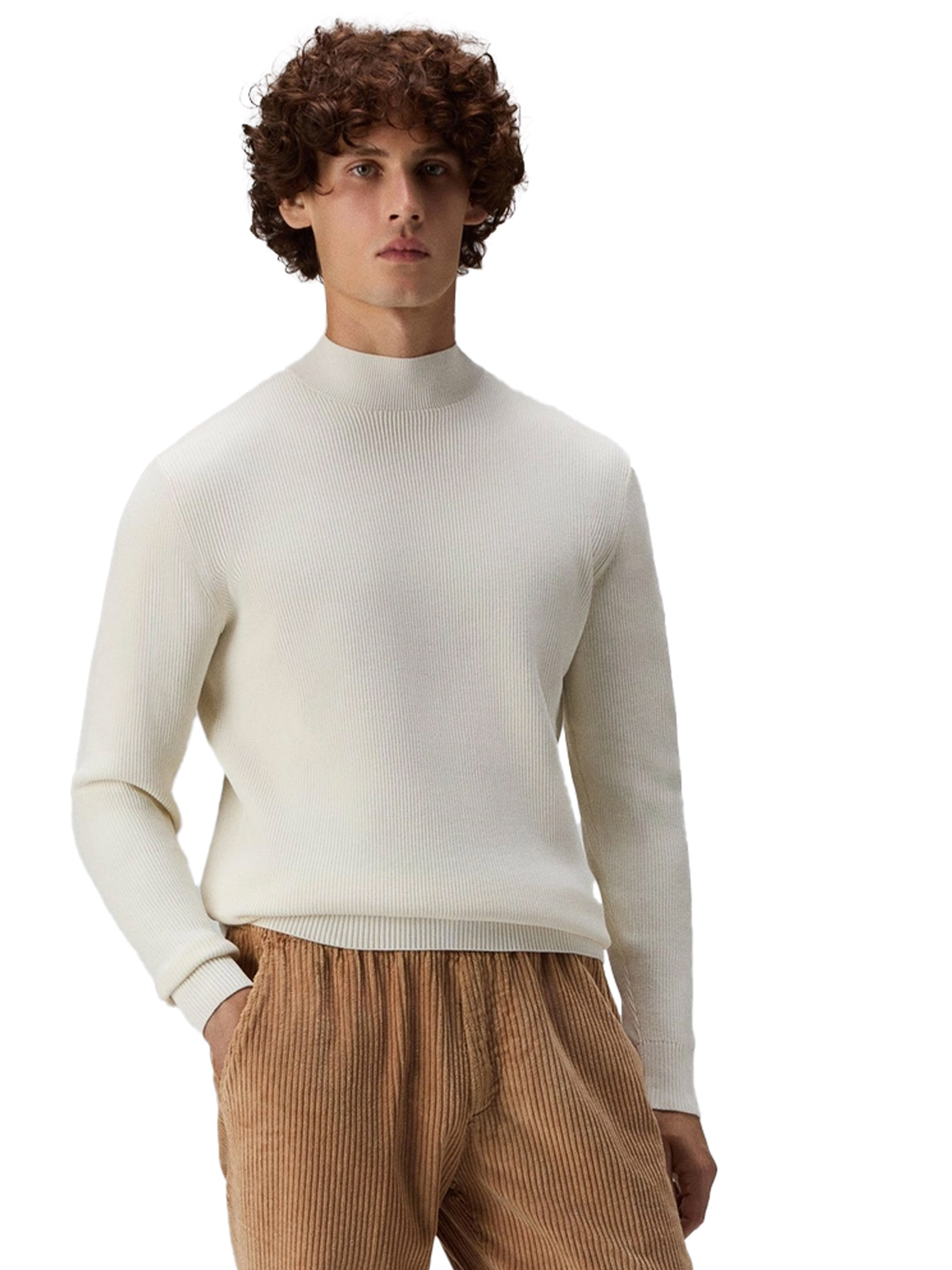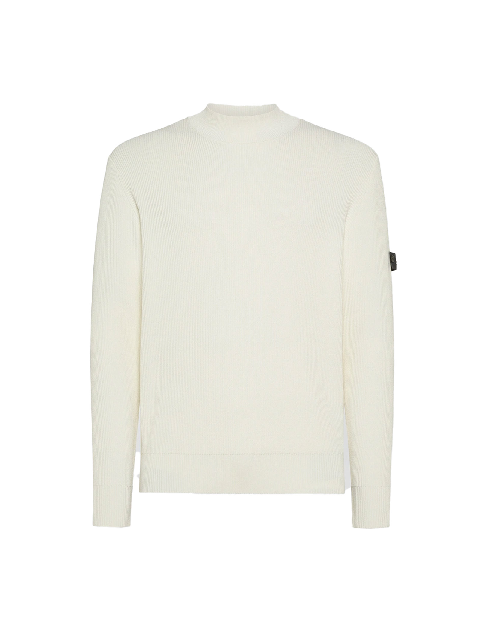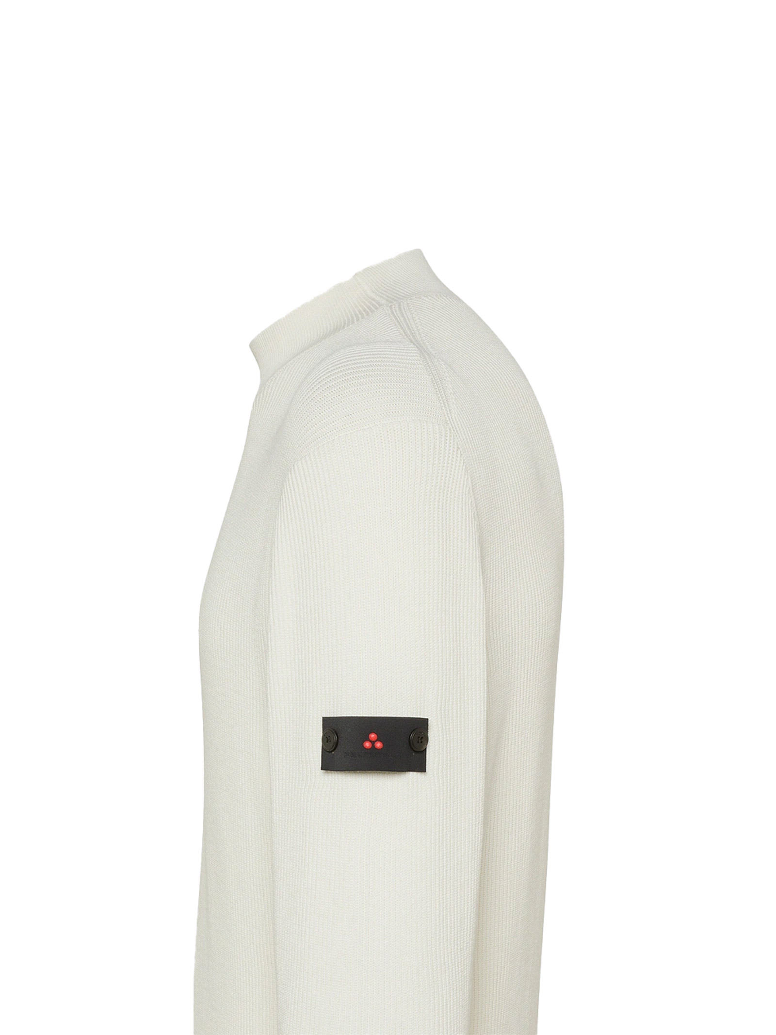 Turtleneck sweater in cotton tricot, made with English rib knitting. English rib, also known as "fisherman's rib," is a knitting technique that creates a thicker and more elastic fabric than standard knitting, with a refined three-dimensional effect. The essential design is completed by ribbed collar, cuffs, and hem for a comfortable and defined fit. The customization with the Peuterey trilogy logo, the brands iconic symbol, is discreetly applied on the left arm with two small buttons. A classic and versatile garment, enhanced by the particular fabric texture, perfect to enrich your wardrobe with a touch of contemporary elegance.