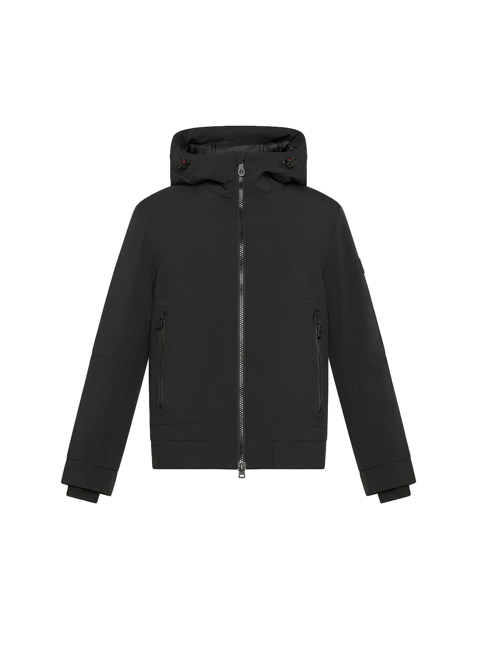 A sporty jacket with a clean design, ideal for accompanying kids in their daily outdoor activities. Made from stretch polyester canvas combined with a soft and warm polyester jersey, thanks to the fine yarns used. The synthetic padding ensures optimal thermal comfort without adding weight. The central double-slider zipper, fixed adjustable hood with drawstring, and large side pockets enhance its practicality. The black windproof cuffs in contrasting color emphasize its bold and sophisticated character while providing extra protection. The outer fabric is water-repellent with a PFC-free treatment, free from harmful chemicals for the environment. A versatile garment, perfect for enjoying every moment freely.