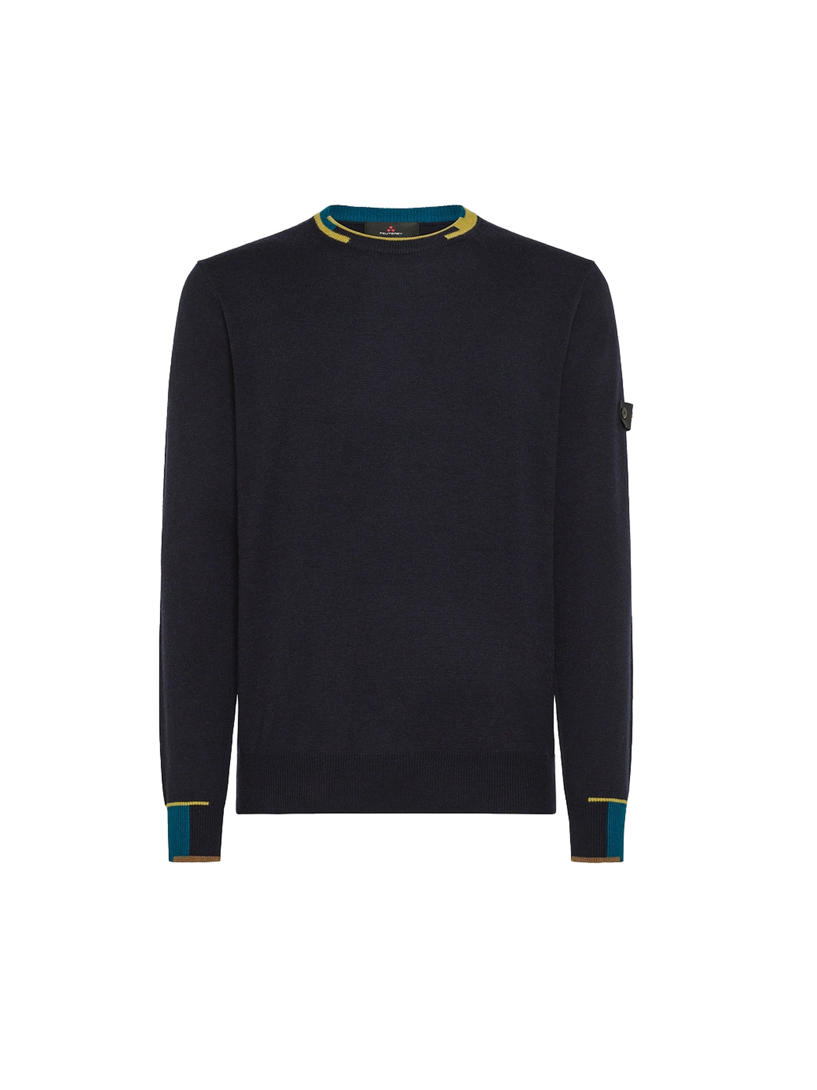 Crewneck sweater in wool and nylon blend knit, featuring contrasting details on the collar, cuffs, and hem that enhance its contemporary character. The clean construction and refined palette make it a versatile garment, perfect for adding a touch of personality to everyday looks. The iconic Peuterey logo personalization on the left sleeve completes the design with a distinctive touch.