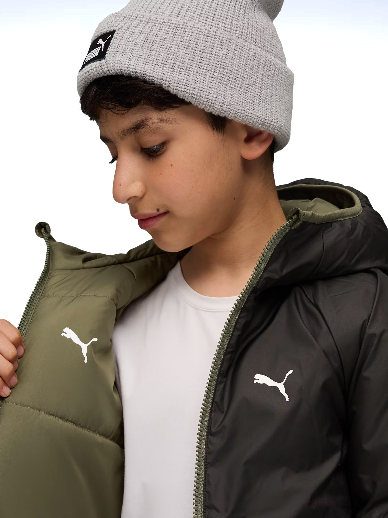 Turn it inside out to double the fun! The reversible design offers two colors, and warmCELL technology keeps them warm on cold days. Zip pockets and fleece cuffs add comfort, while the hood provides extra warmth. Perfect for playground adventures or weekend outings. PUMA brings energy to every walk!