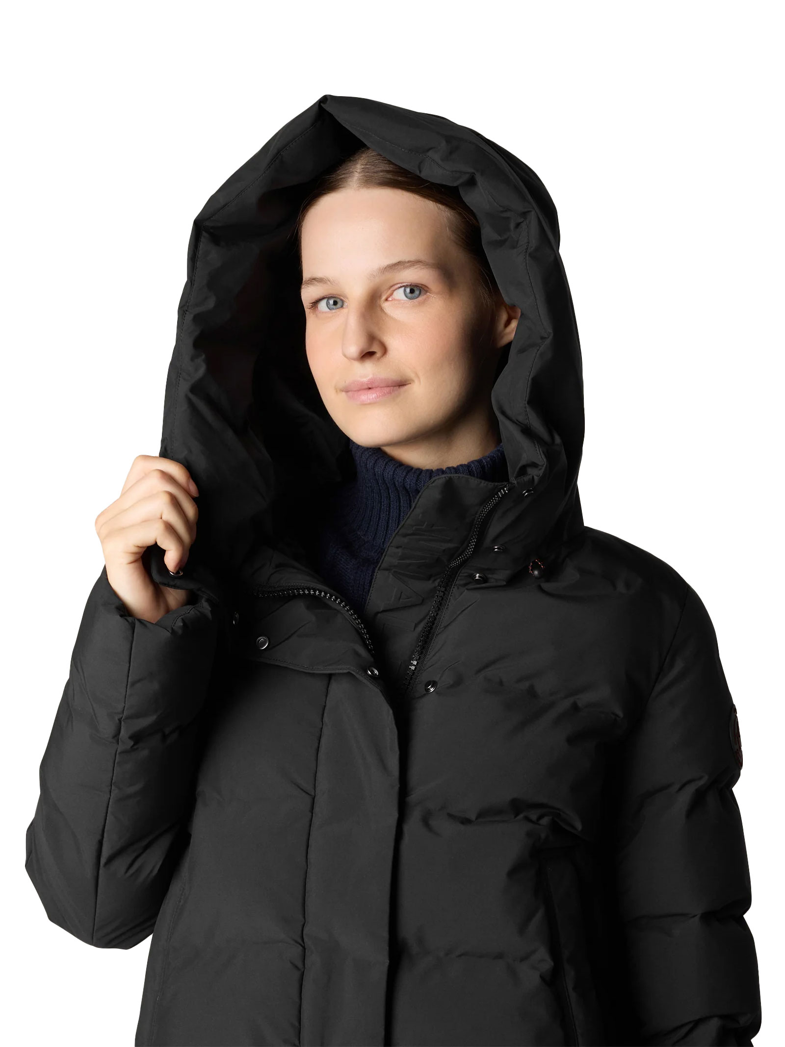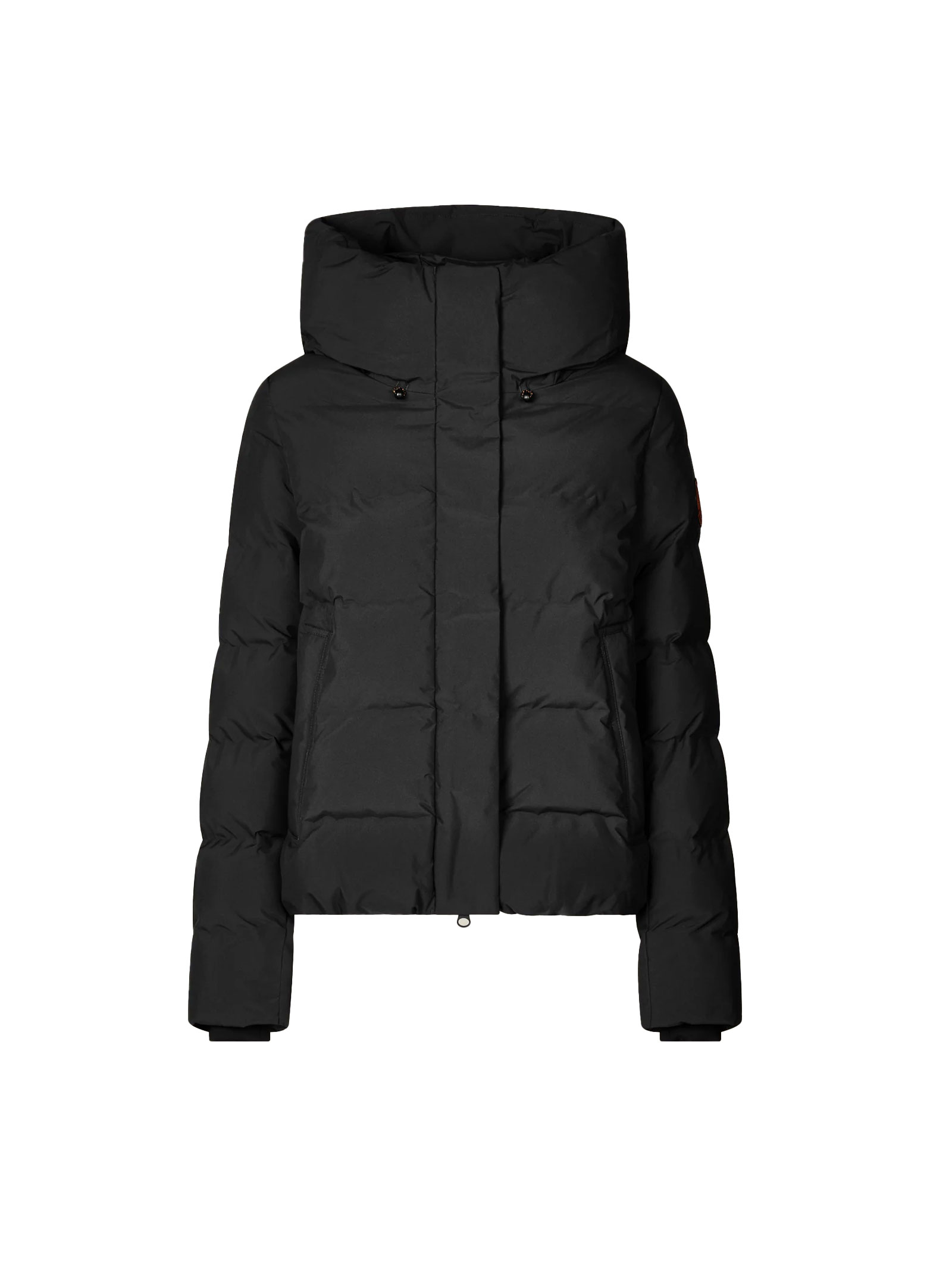 The Arena women's parka stands out for its short, feminine cut, made from a new soft-touch fabric that is resistant to rain and wind. The Recycled Plumtech® padding with heat-sealed quilting, elastic hem, and adjustable hood make this jacket perfect for facing the cold in both the city and nature. The two-way zip and flap with buttons complete the design with a functional touch.
