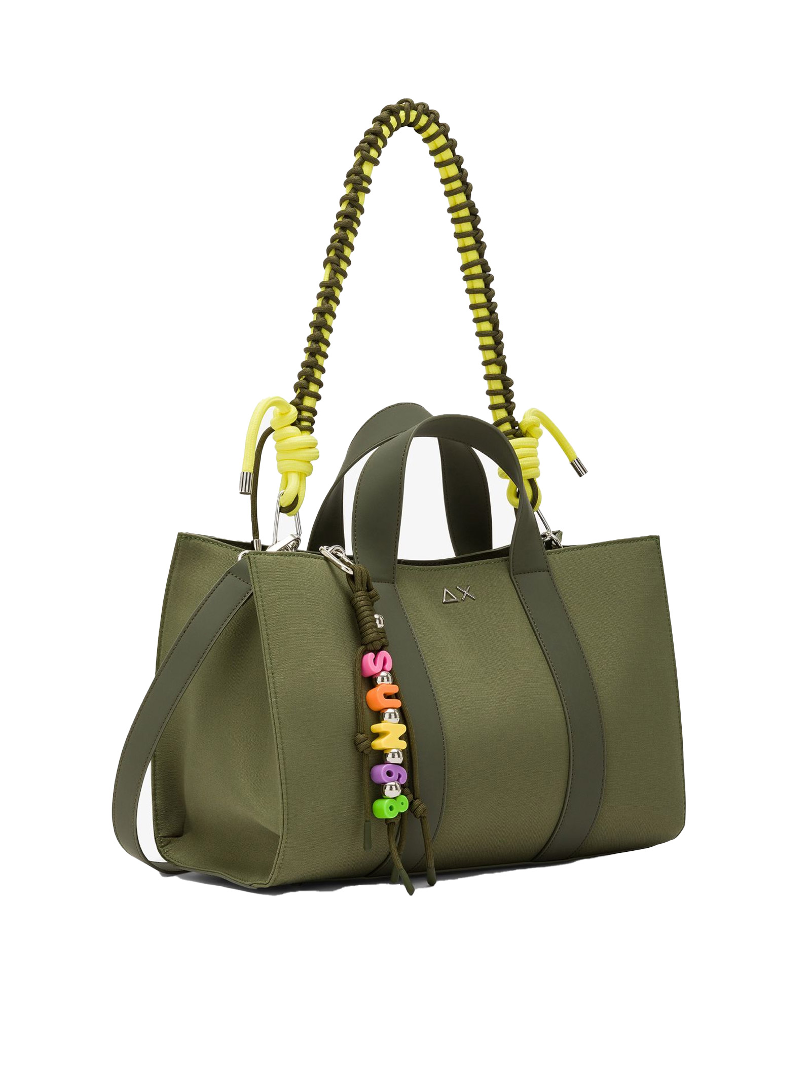 The SUN68 bag plays with vibrant color combinations and a spacious, contemporary design in line with current trends. From the energy of the woven handles to the shine of the logo details, every element reflects a distinctive approach to style. It pairs perfectly with the sneakers from the collection, turning everyday looks into true style statements.