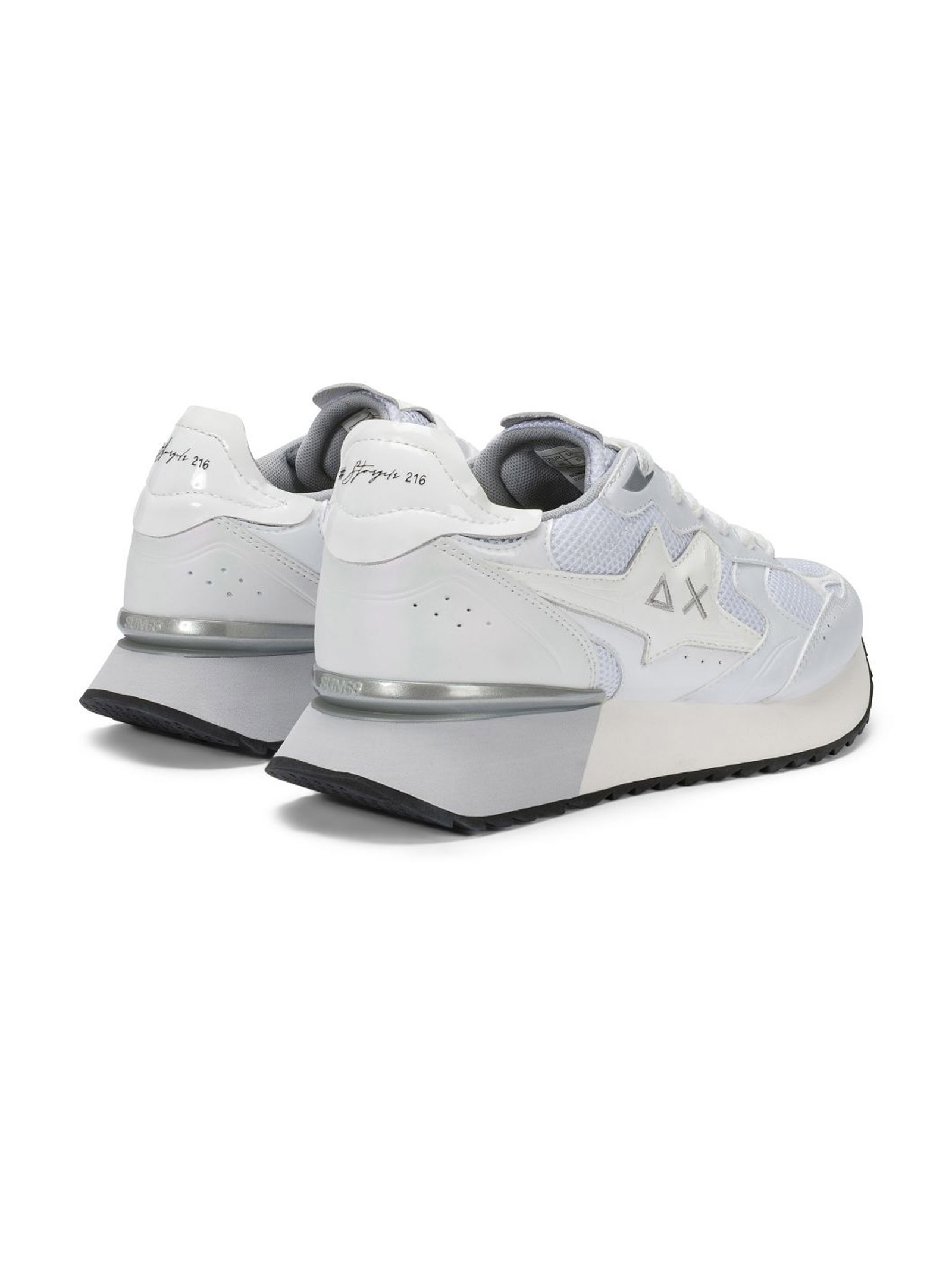 Metallic reflections and a futuristic spirit define the Stargirl Silver, the sneaker that catches the eye with every step. It features a combination of durable materials and a high, lightweight rubber sole that supports movement while elongating the silhouette. Perfect from work to leisure, it pairs beautifully with knitwear from the new collection for a textured look full of personality.