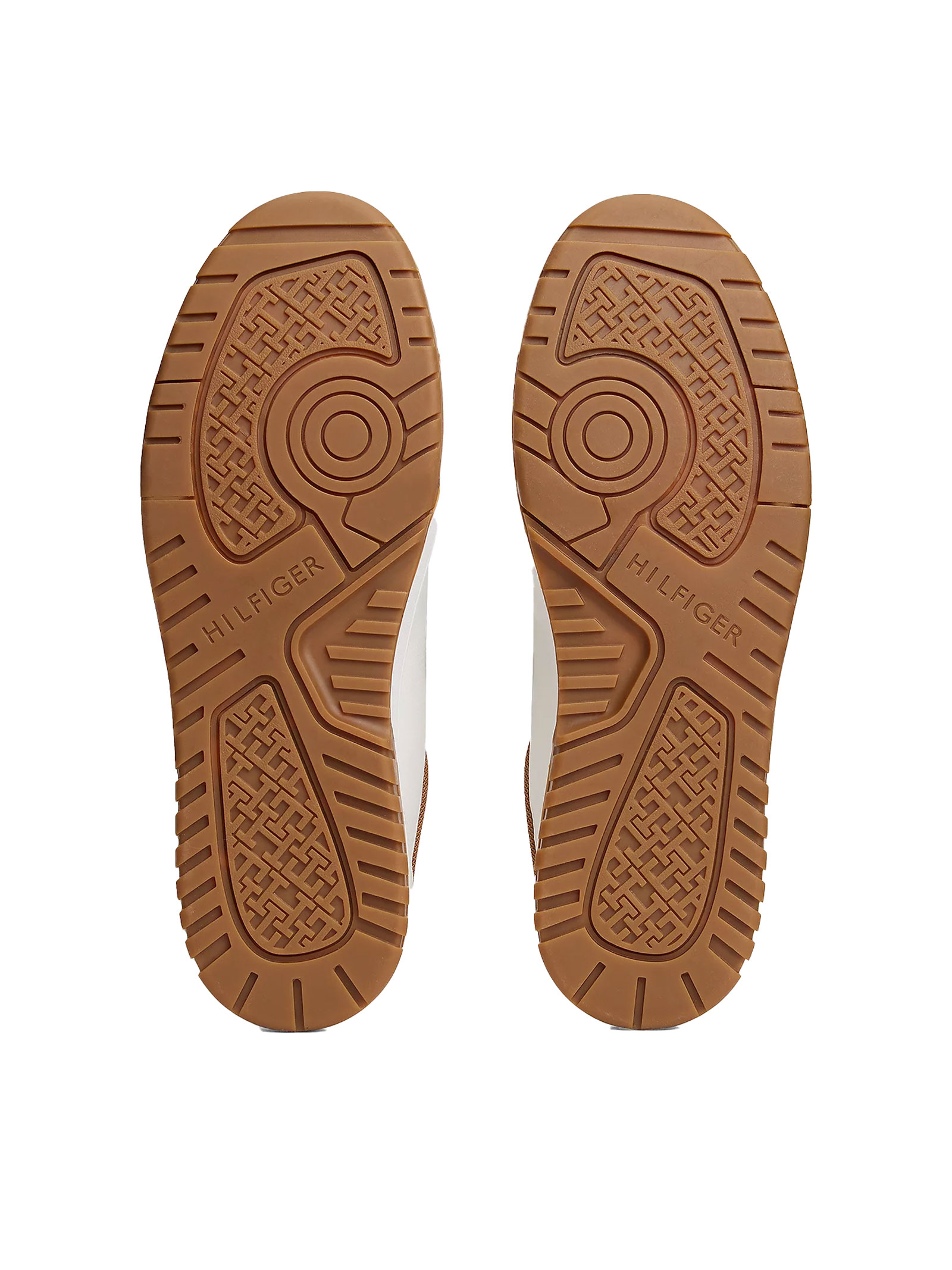 These lace-up leather sneakers with a mix of textures and a chunky lug sole are inspired by retro basketball shoe design.