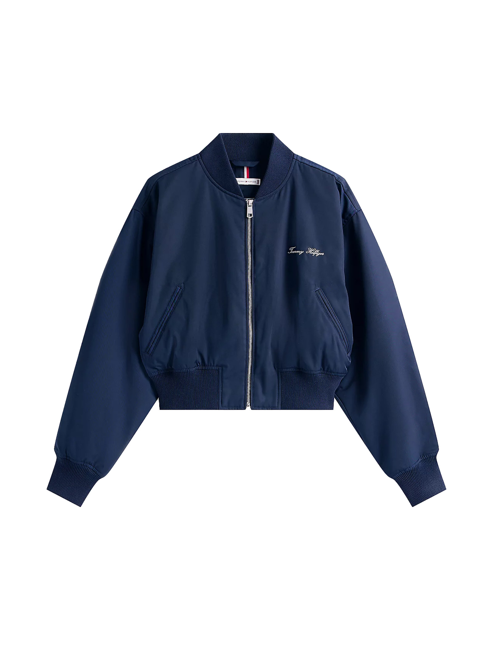 - Embroidered Tommy Hilfiger cursive logo on the chest