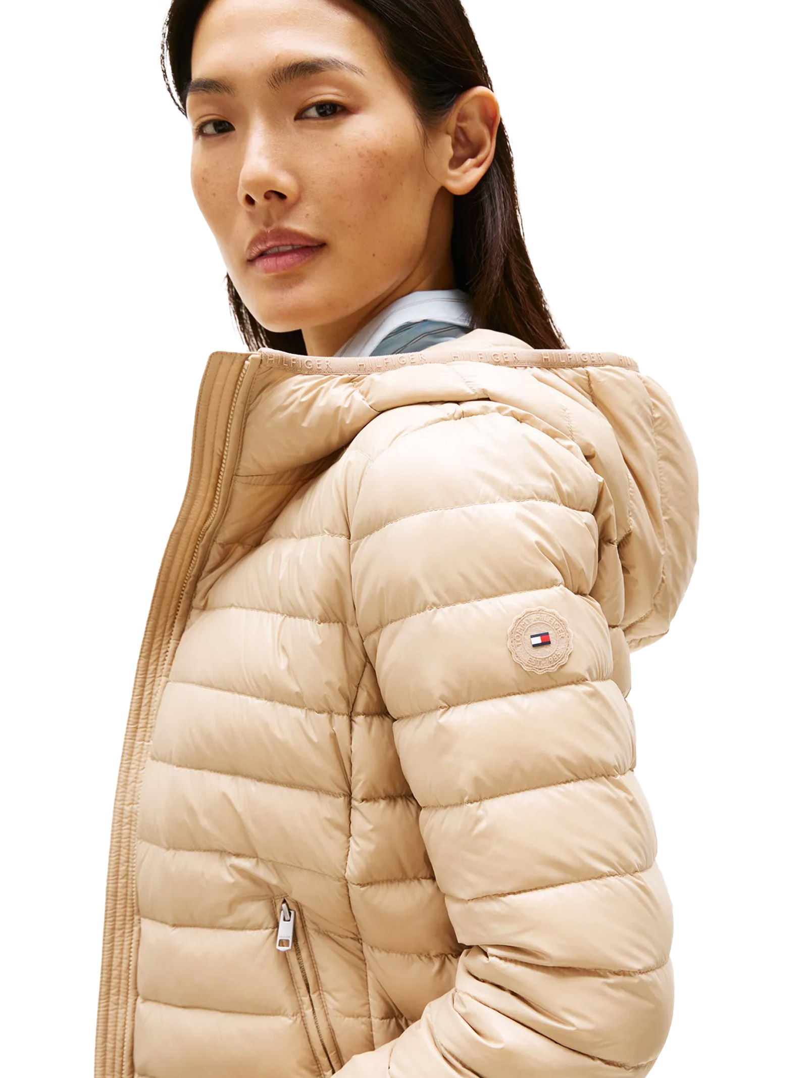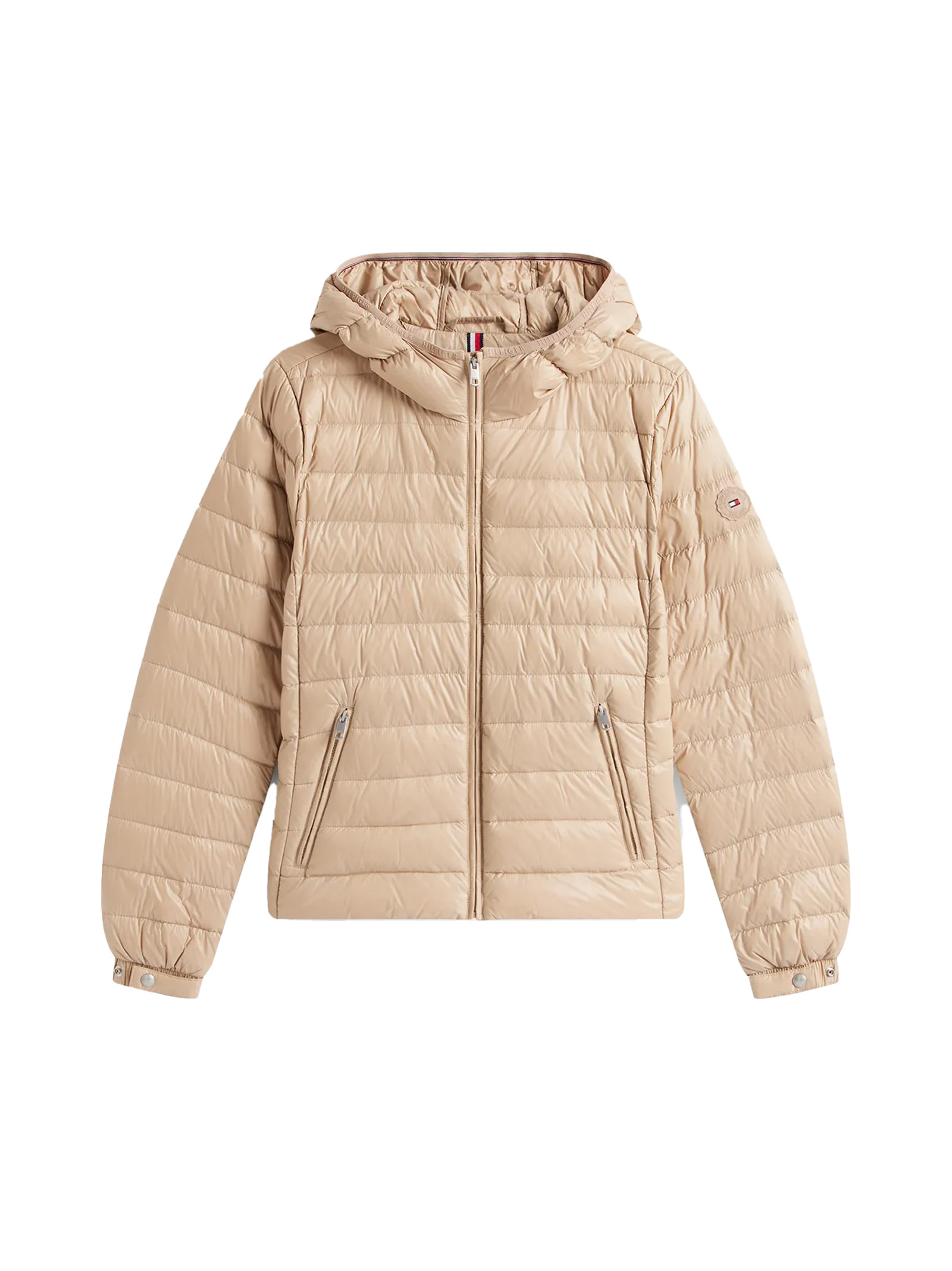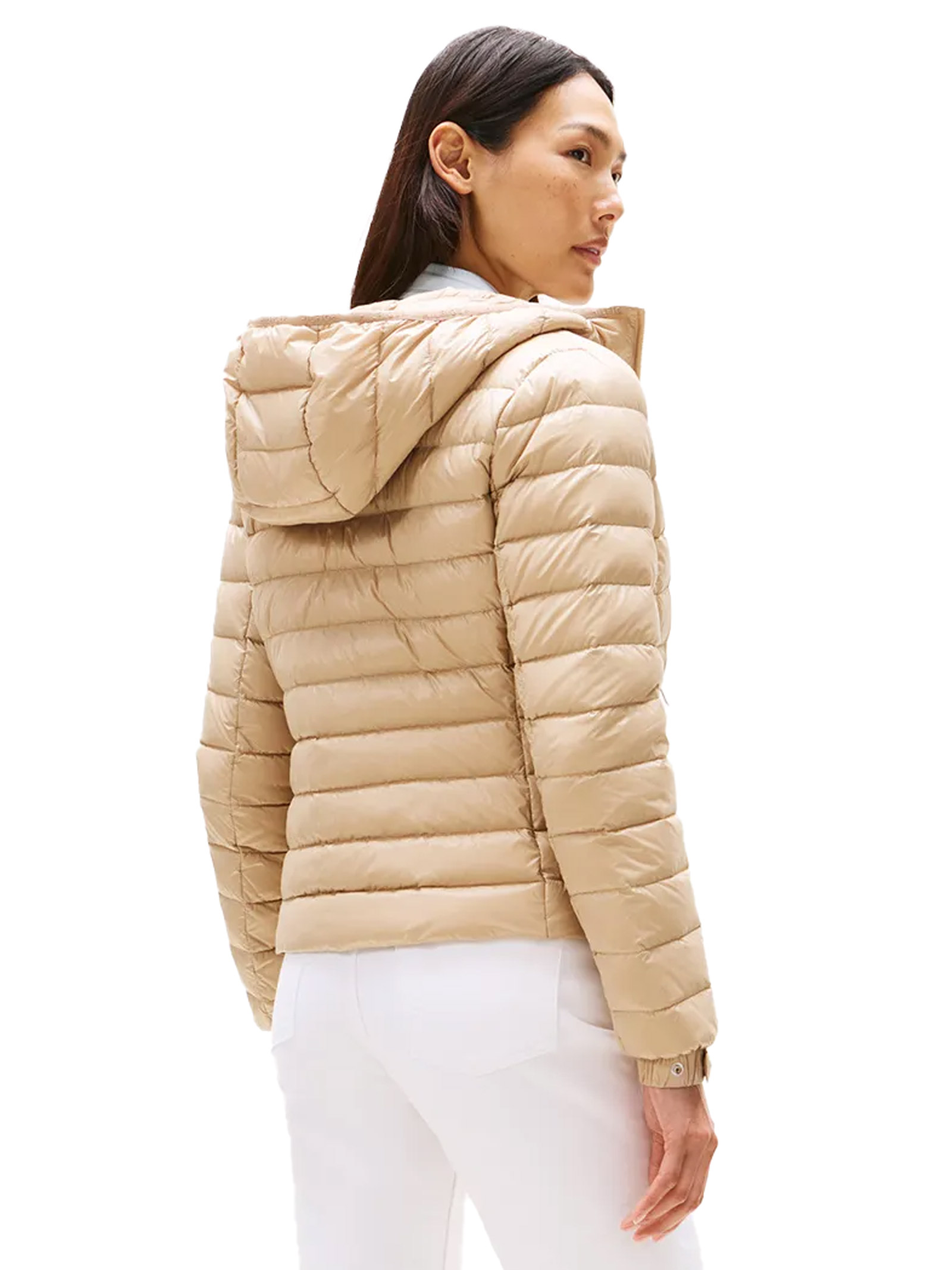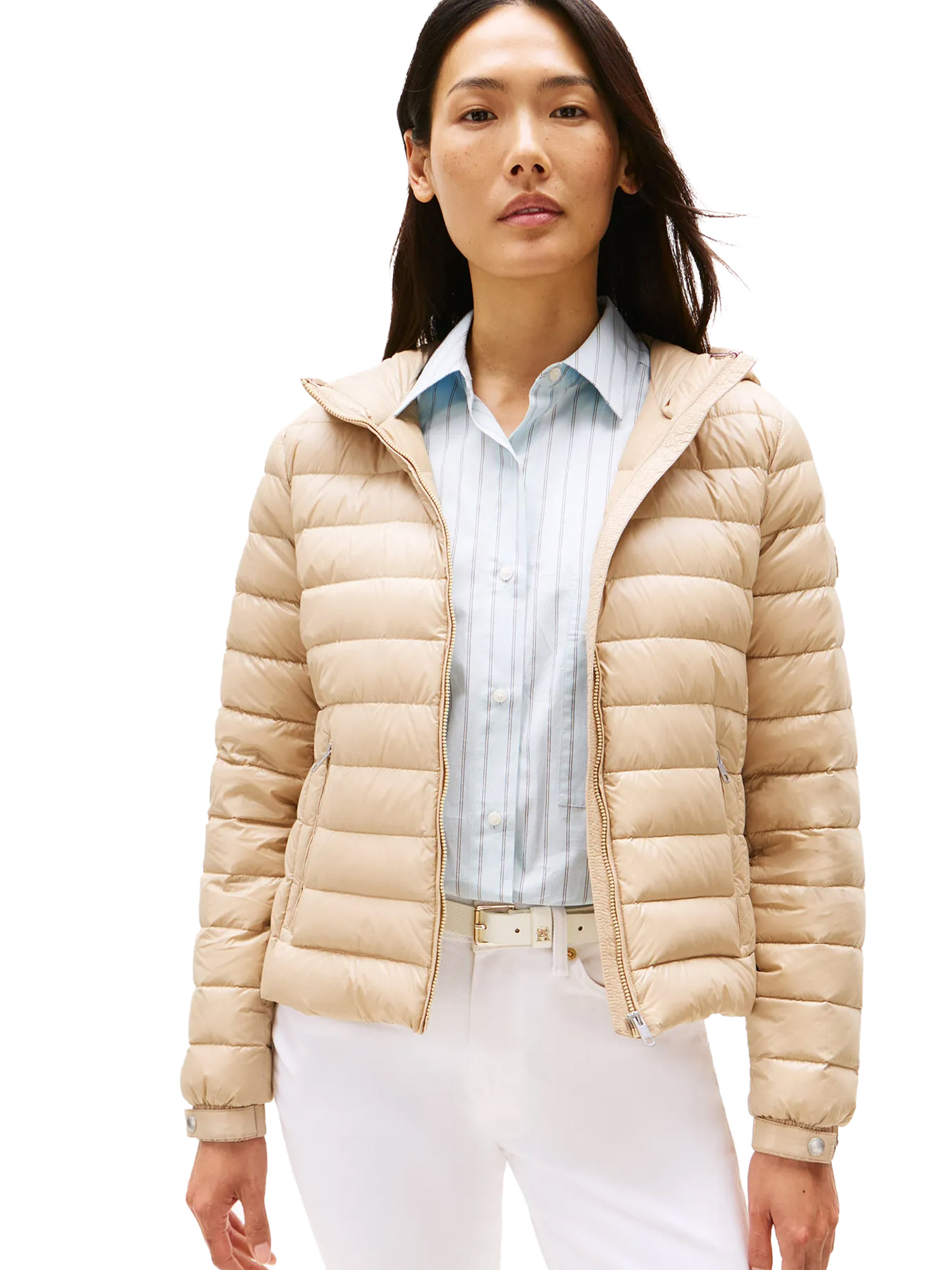 Keep the cold at bay with this warm hooded quilted jacket. Made from recycled nylon, it features a front zip and two zippered front pockets for a practical yet stylish outer layer.