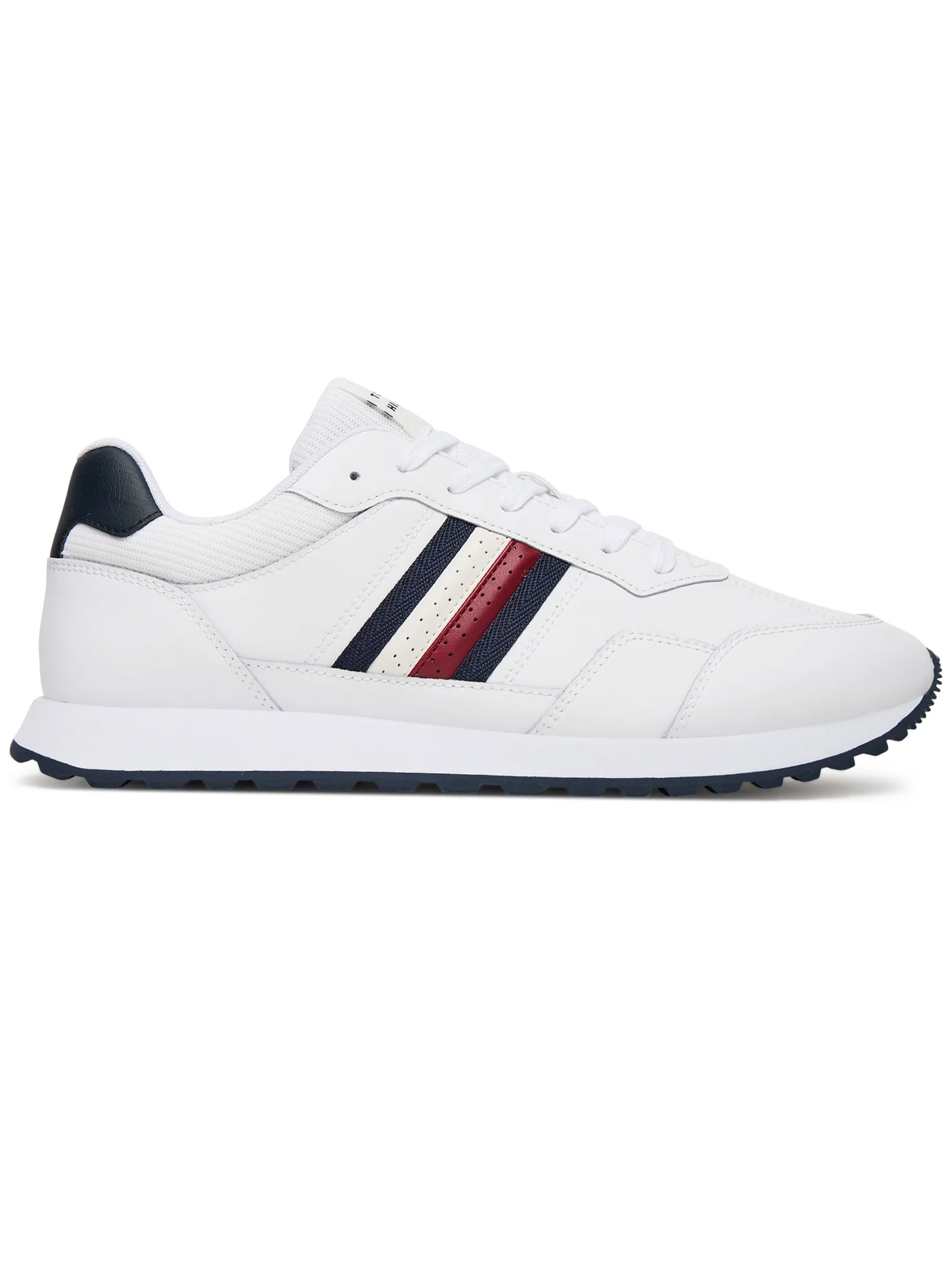Iconic details, such as the ribbon on the side and the rubberized flag on the heel, enrich these sneakers made of leather and mixed materials.