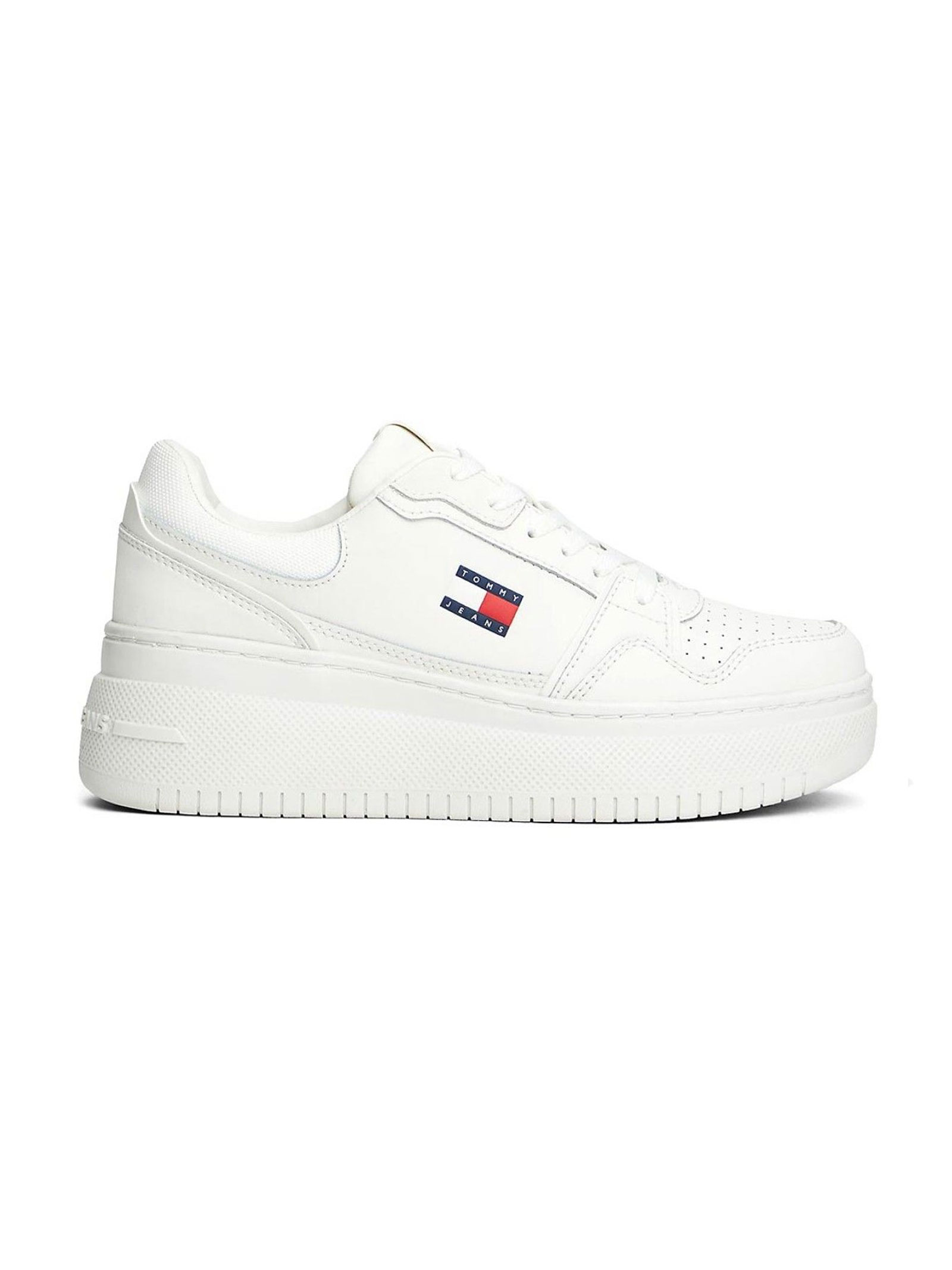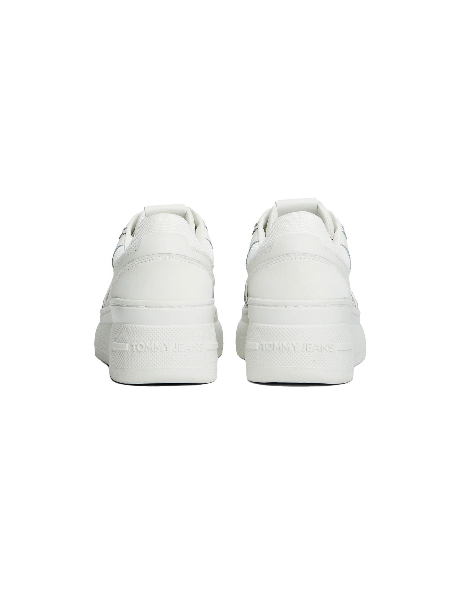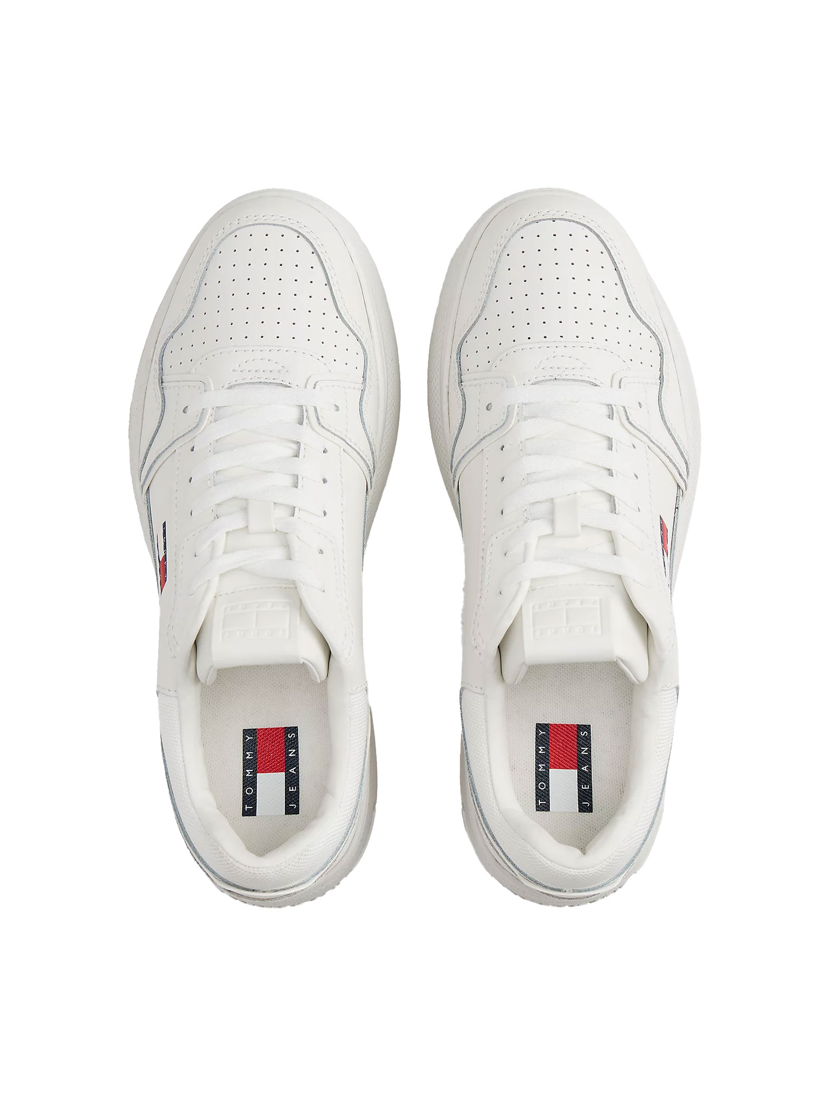 The mixed leather sneakers, with a platform sole and iconic branding, draw inspiration from the retro design of classic basketball shoes.