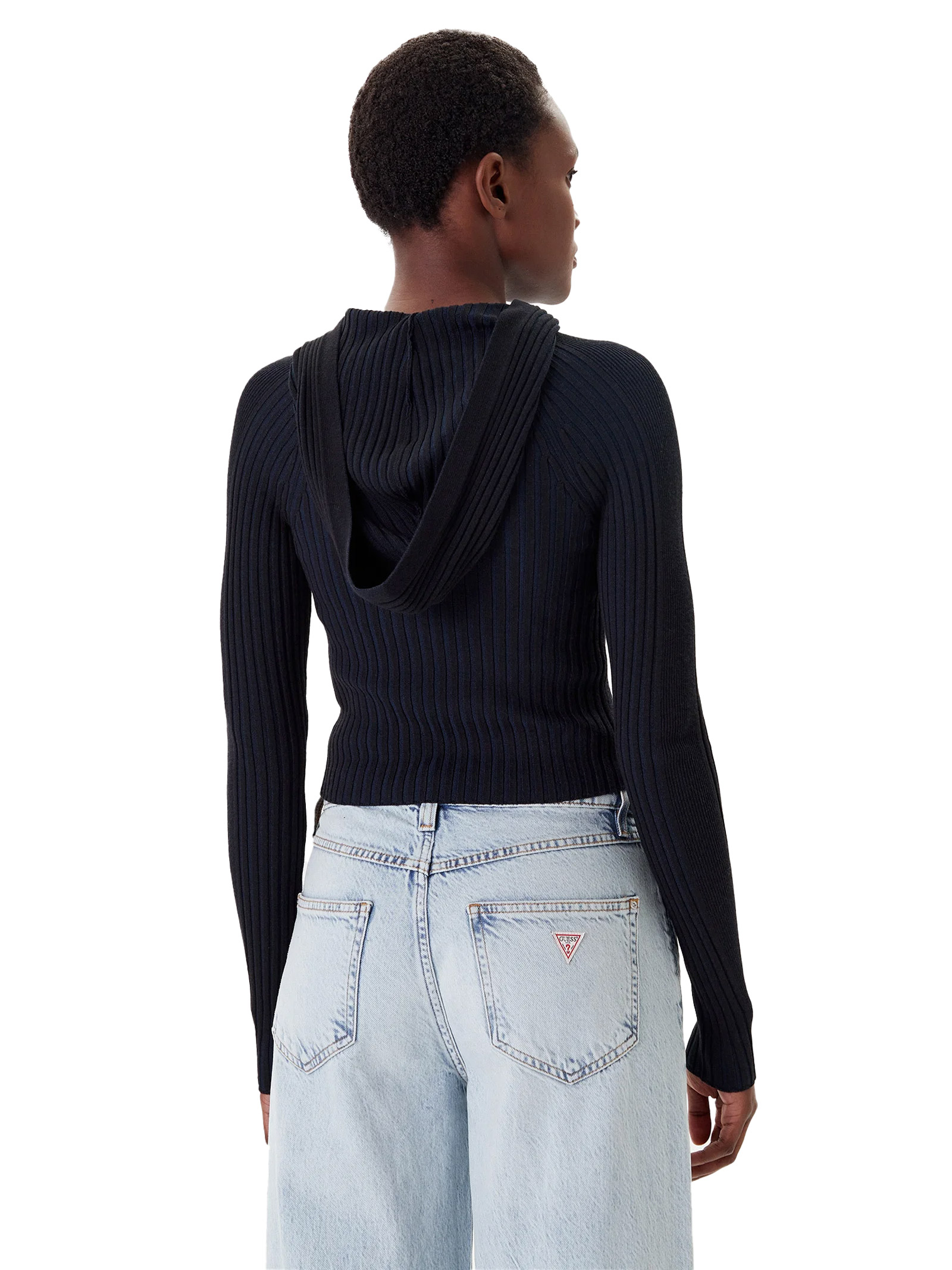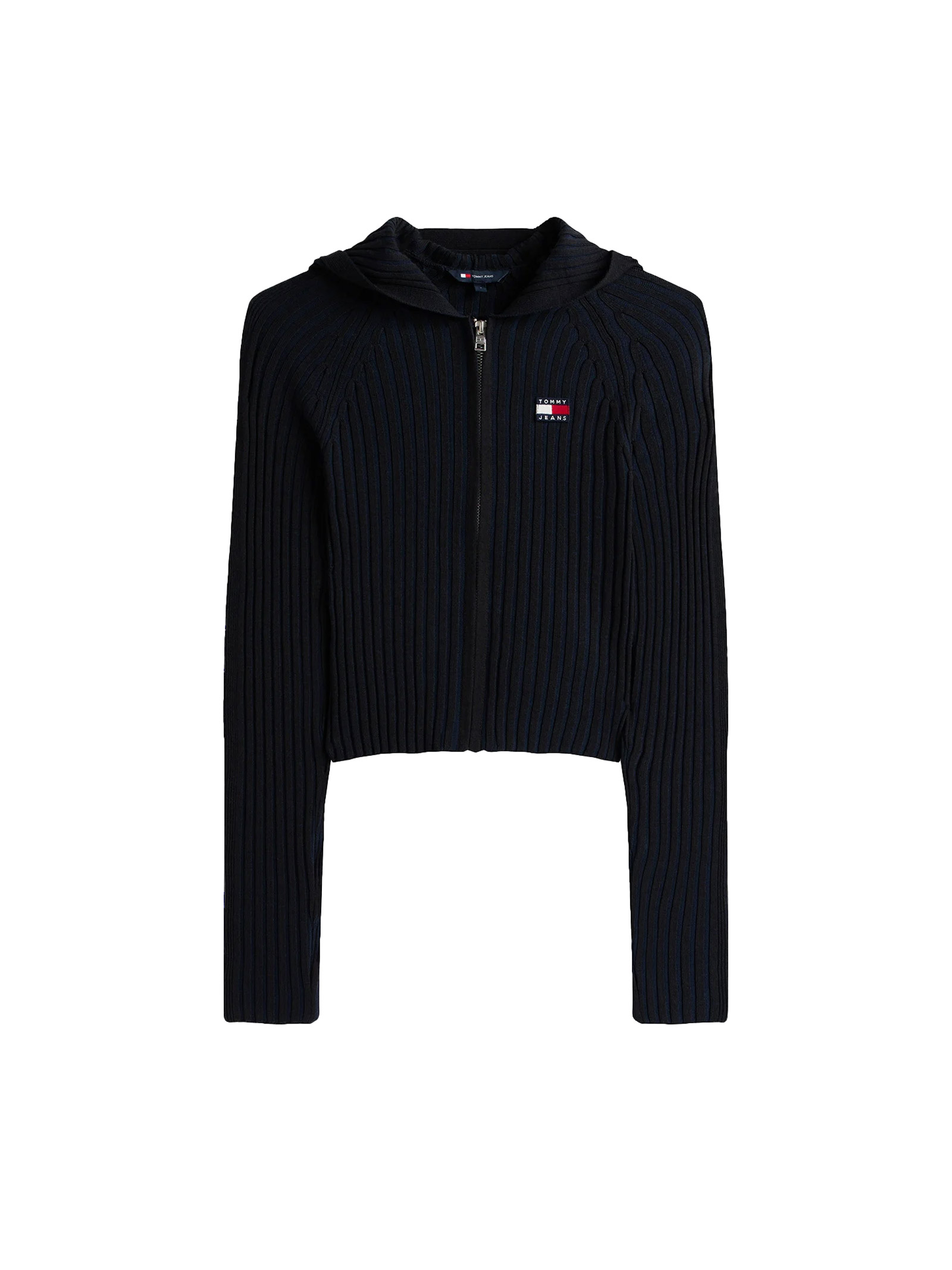 This comfortable hooded pullover with a full zip, enhanced by its ribbed texture, evokes the timeless elegance of classic style.