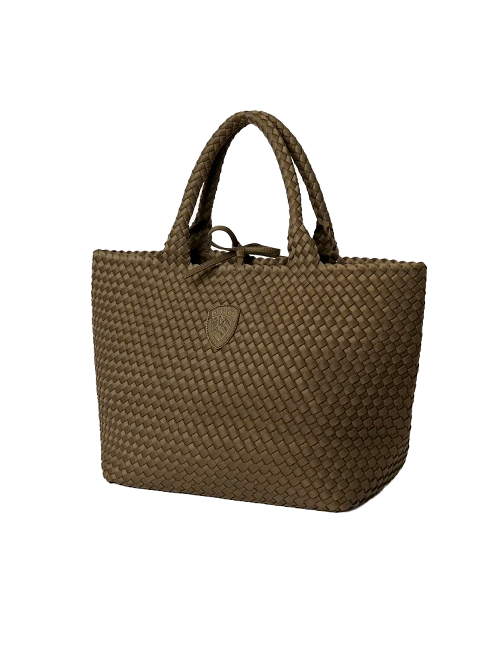Elegante borsa tote Blauer dalla raffinata trama intrecciata. Dotata di robusti doppi manici e dell'iconico scudo con logo applicato sul davanti, questa borsa unisce un'estetica ricca e artigianale a un design spazioso, perfetto per un look urbano chic quotidiano.