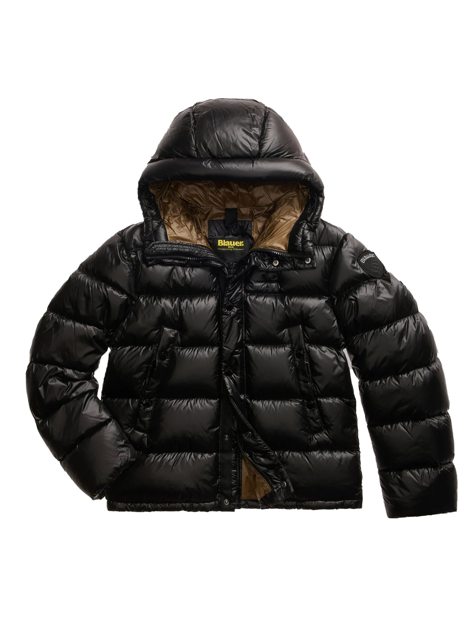 Piumino trapuntato a righe orizzontali e interno in contrasto colore. Capo iconico Blauer con imbottitura in piuma naturale, caldo e poco ingombrante.