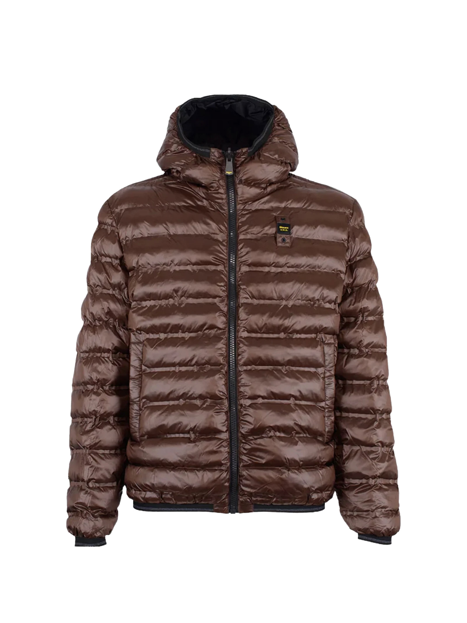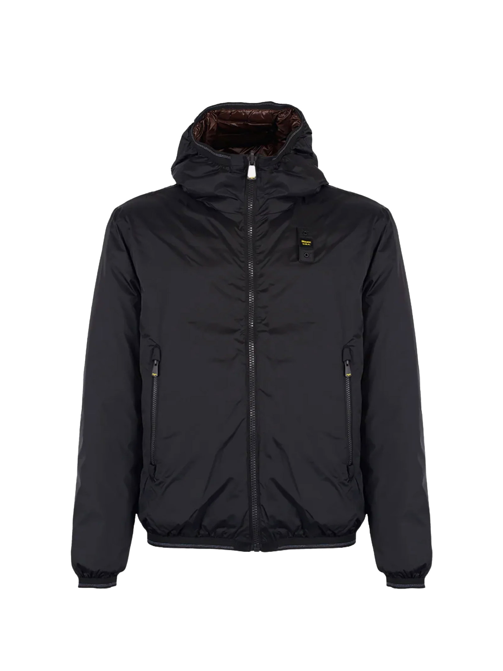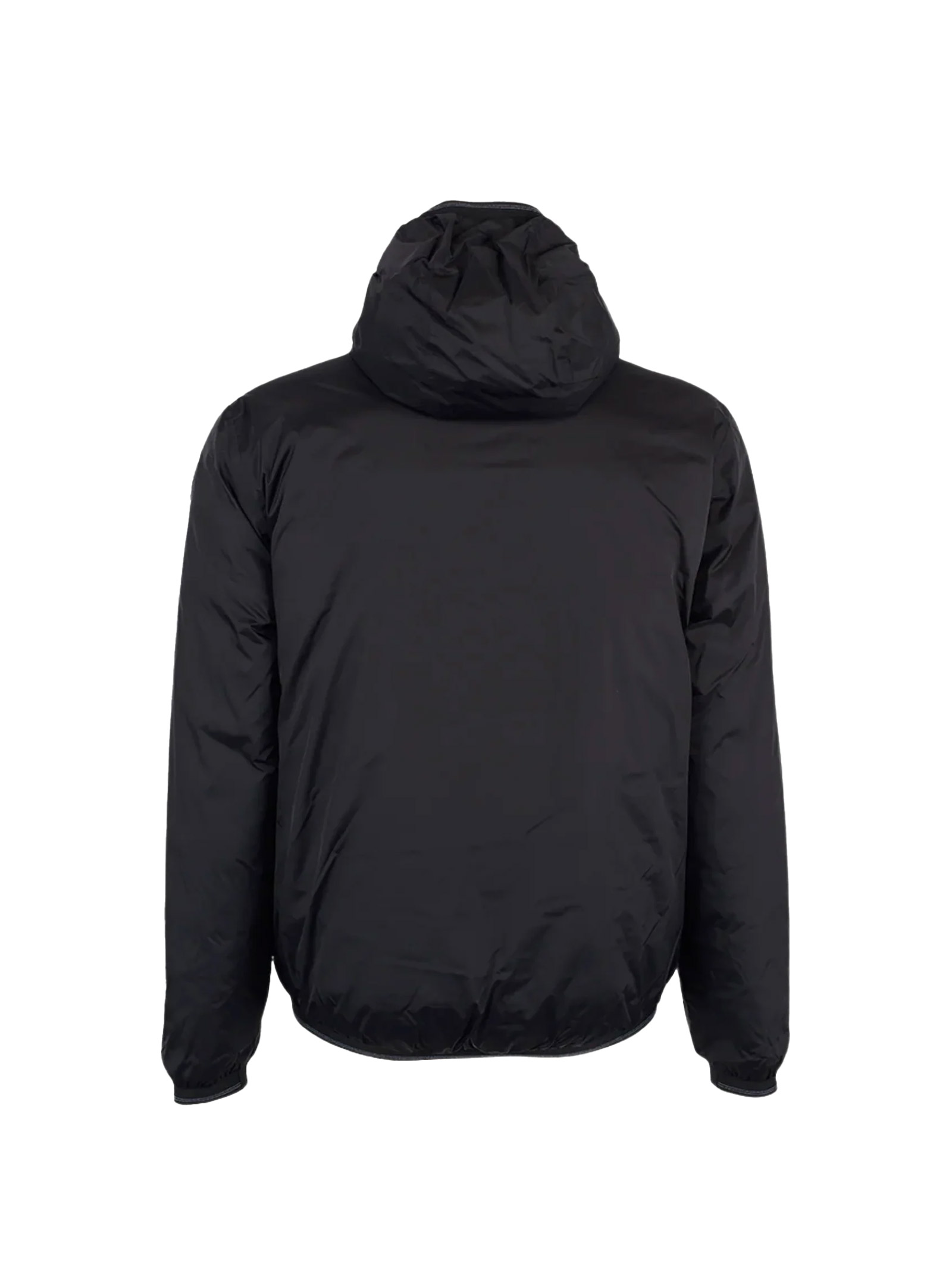 Giacca reversibile con finitura liscia da un lato e cuciture nastrate a righe orizzontali dall'altro. Imbottitura sostenibile ricavata da bottiglie di plastica riciclate. Capo disponibile in due versioni e due colori per offrire versatilità e alternative per diverse occasioni.