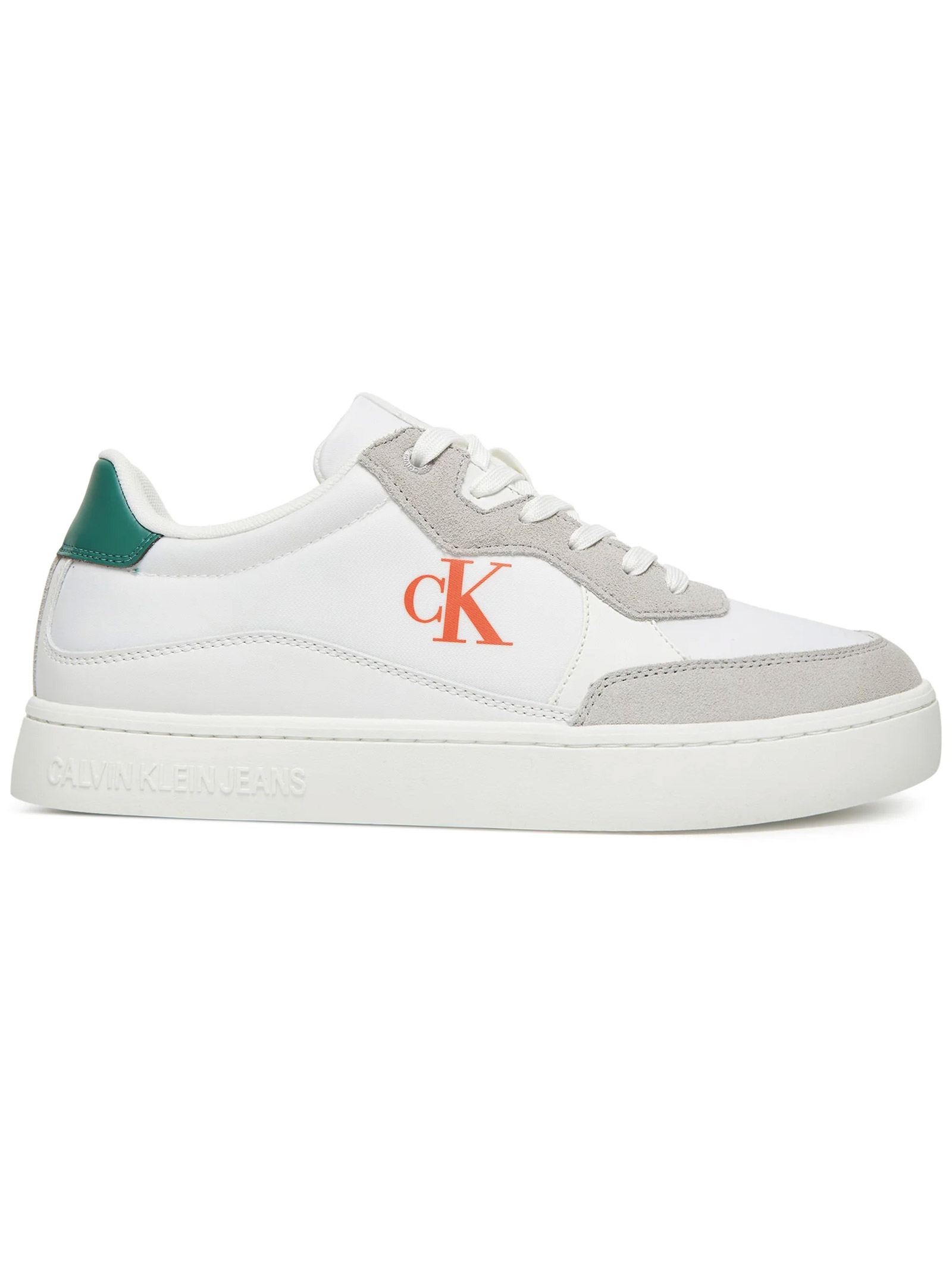 Marchio Calvin Klein su lato, intersuola, linguetta e caviglia