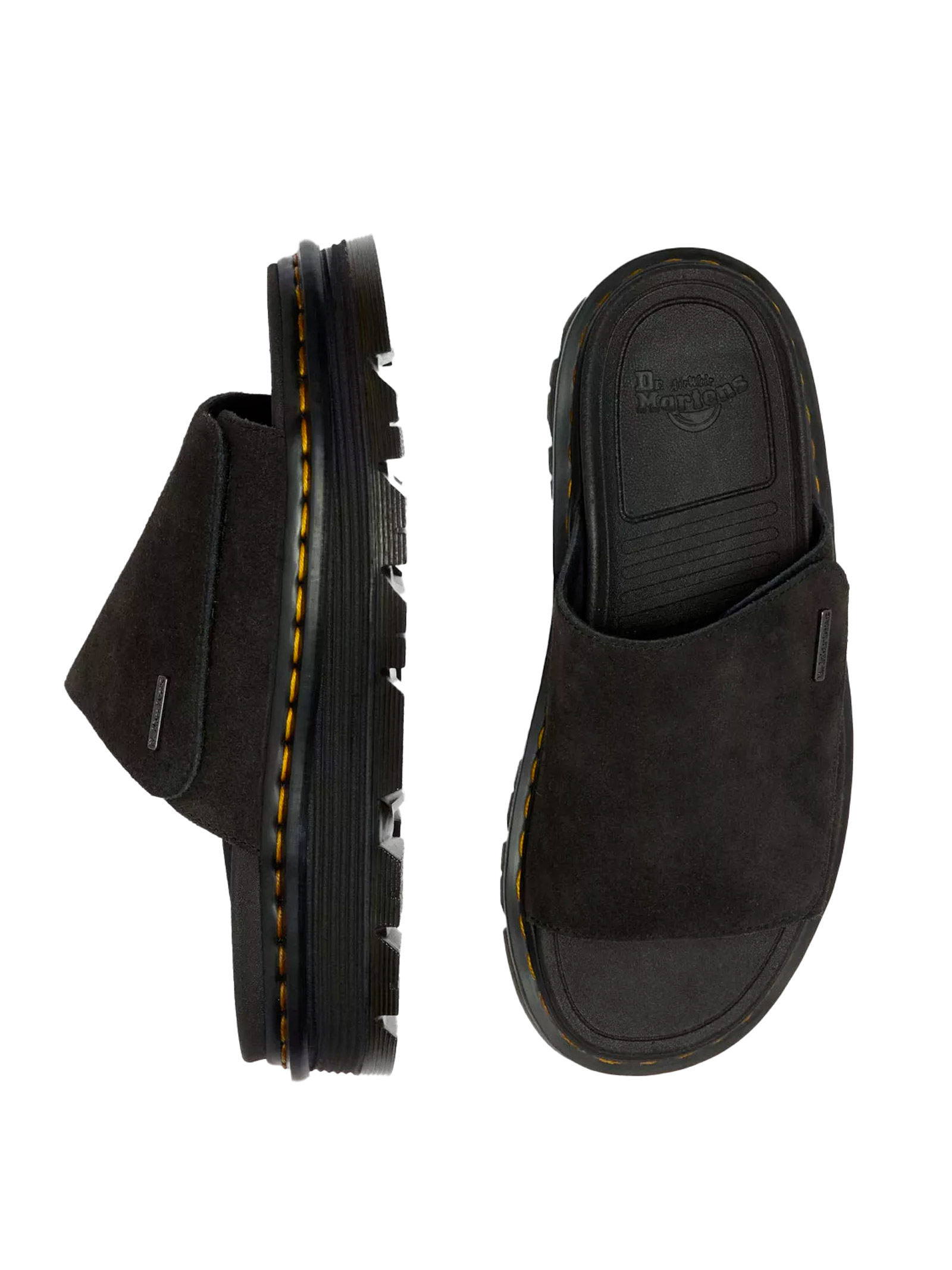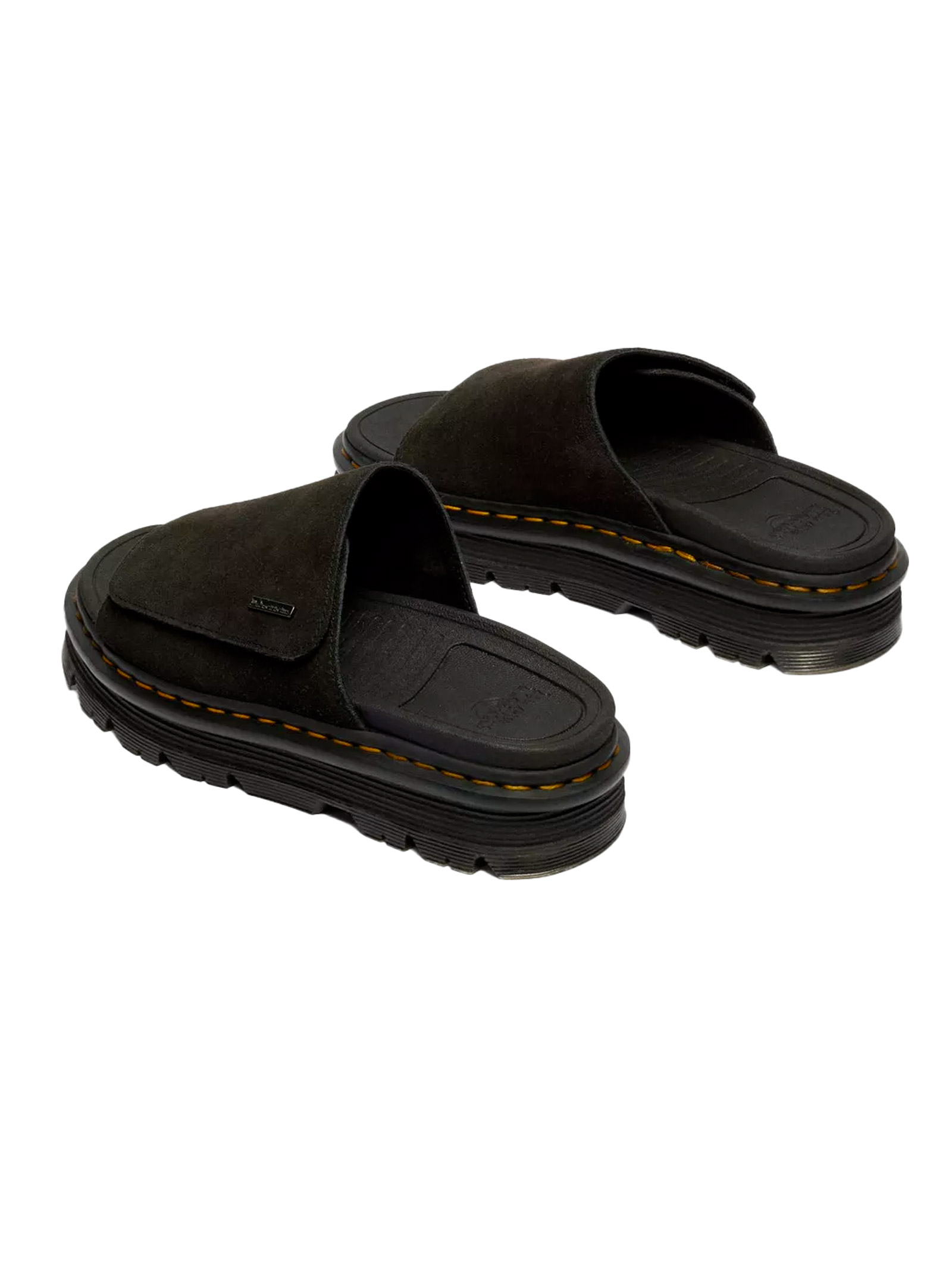Immergiti in un'energia disinvolta. Le Zebzag Slide in pelle scamosciata EH uniscono la morbidezza setosa della pelle scamosciata a un design essenziale. La chiusura a strappo garantisce la massima sicurezza, mentre la suola ibrida ammortizzata ad aria fonde la leggerissima EVA con il robusto PVC, offrendo ai tuoi piedi un po' di slancio senza compromettere la stabilità. Rifinite con una suola nera e fumé e cuciture gialle, sono un concentrato di comfort e personalità.