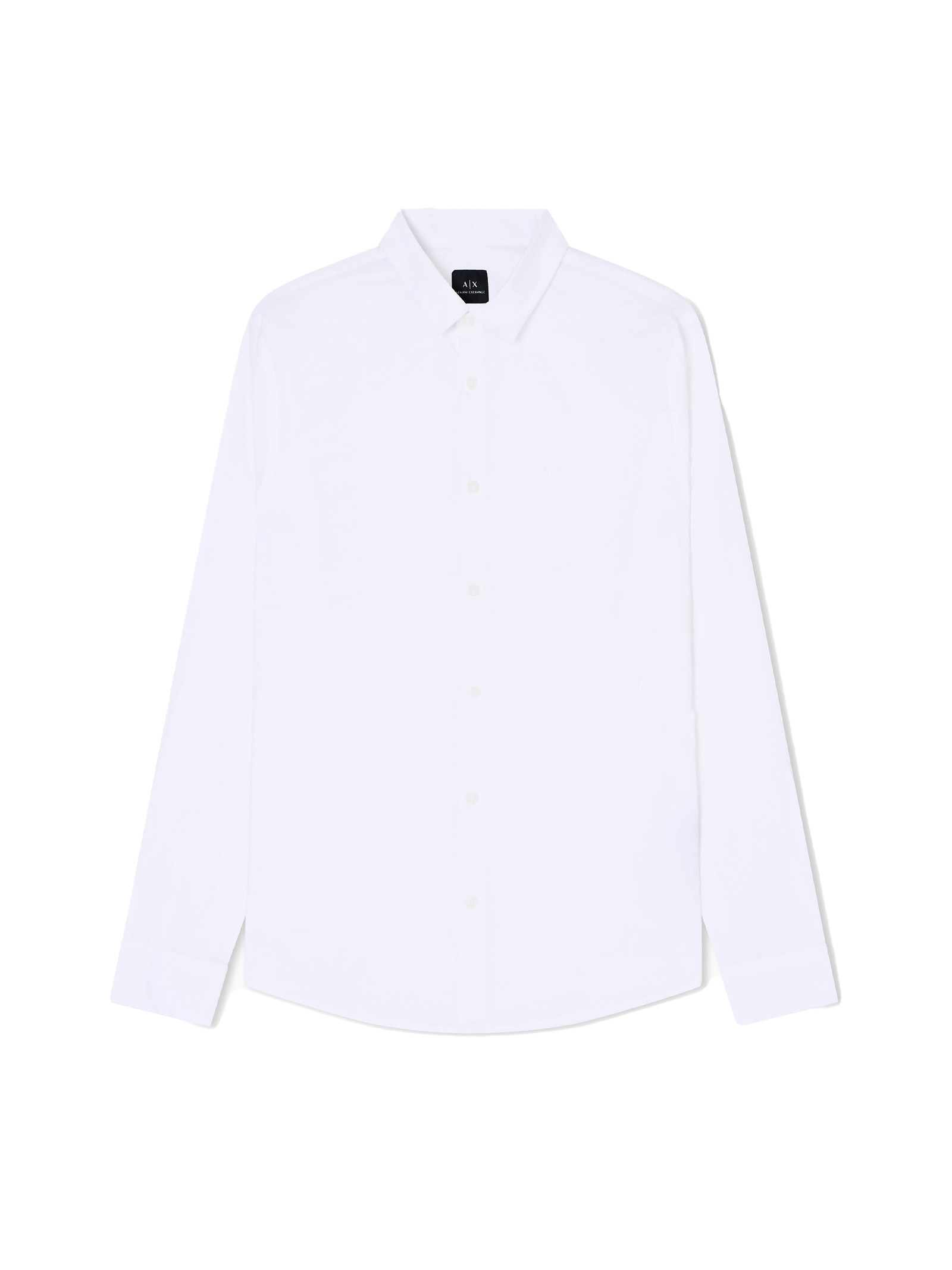 Camicia slim fit realizzata in popeline stretch. Questa camicia è definita dal design essenziale che presenta collo classico, piccolo logo ricamato sul petto, bottoni sul davanti e polsini con bottone.