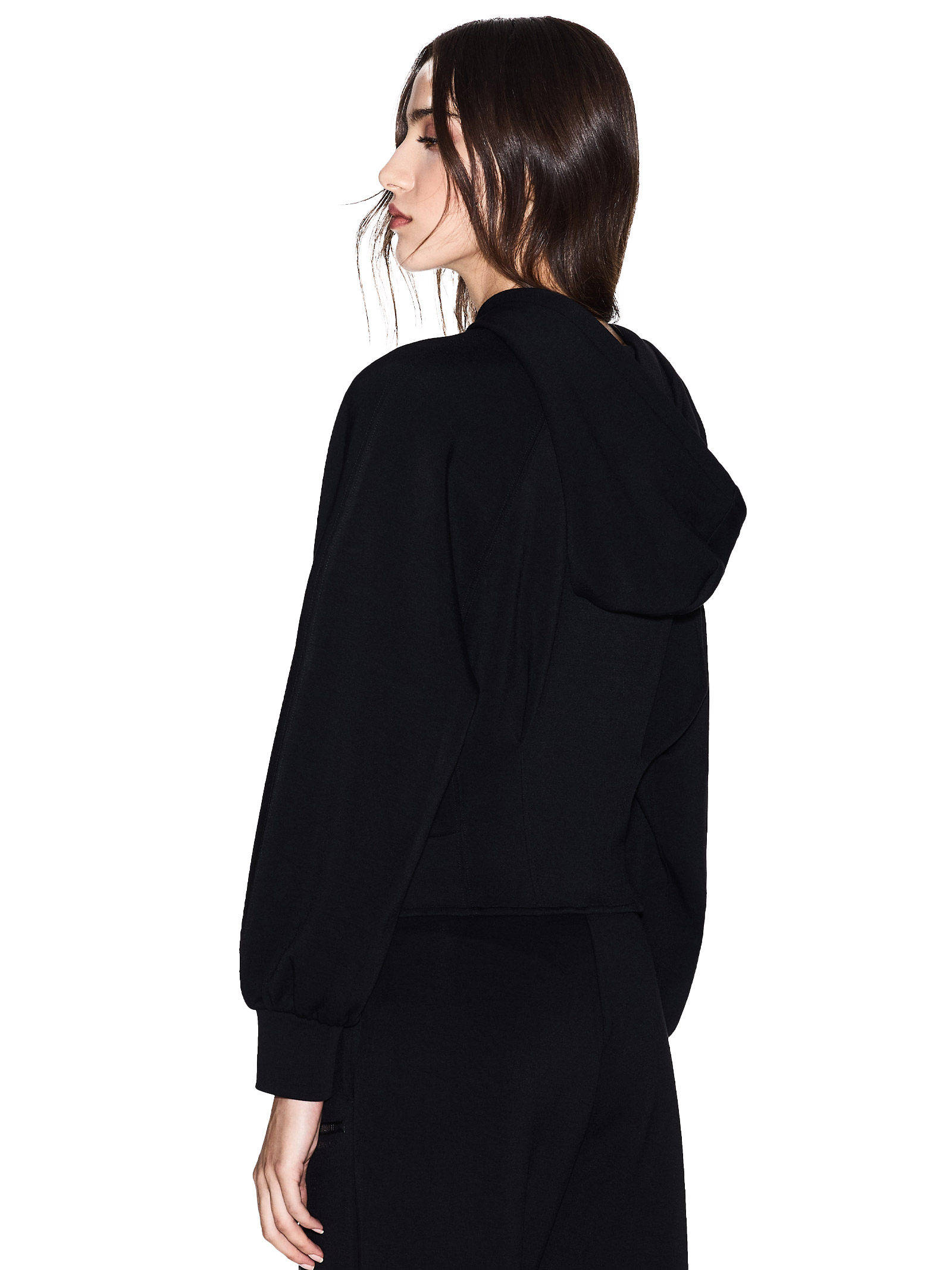 Black mood: hoodie cropped, fit avvitato che esalta la silhouette. Perfetta con jeans o gonna, per un twist edgy al tuo look. La tua nuova ossessione comfy-chic.