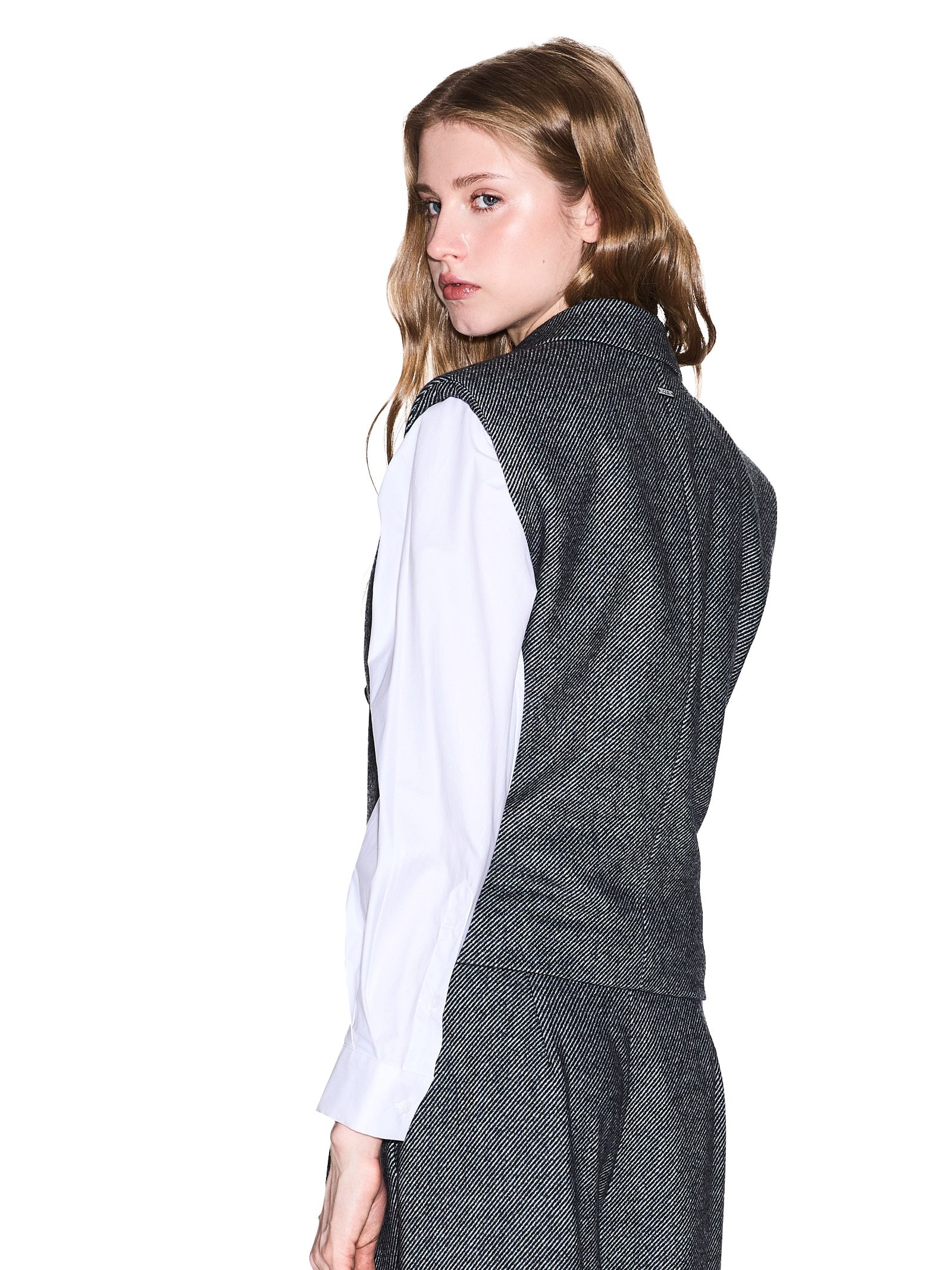Gilet doppiopetto in tessuto strutturato.