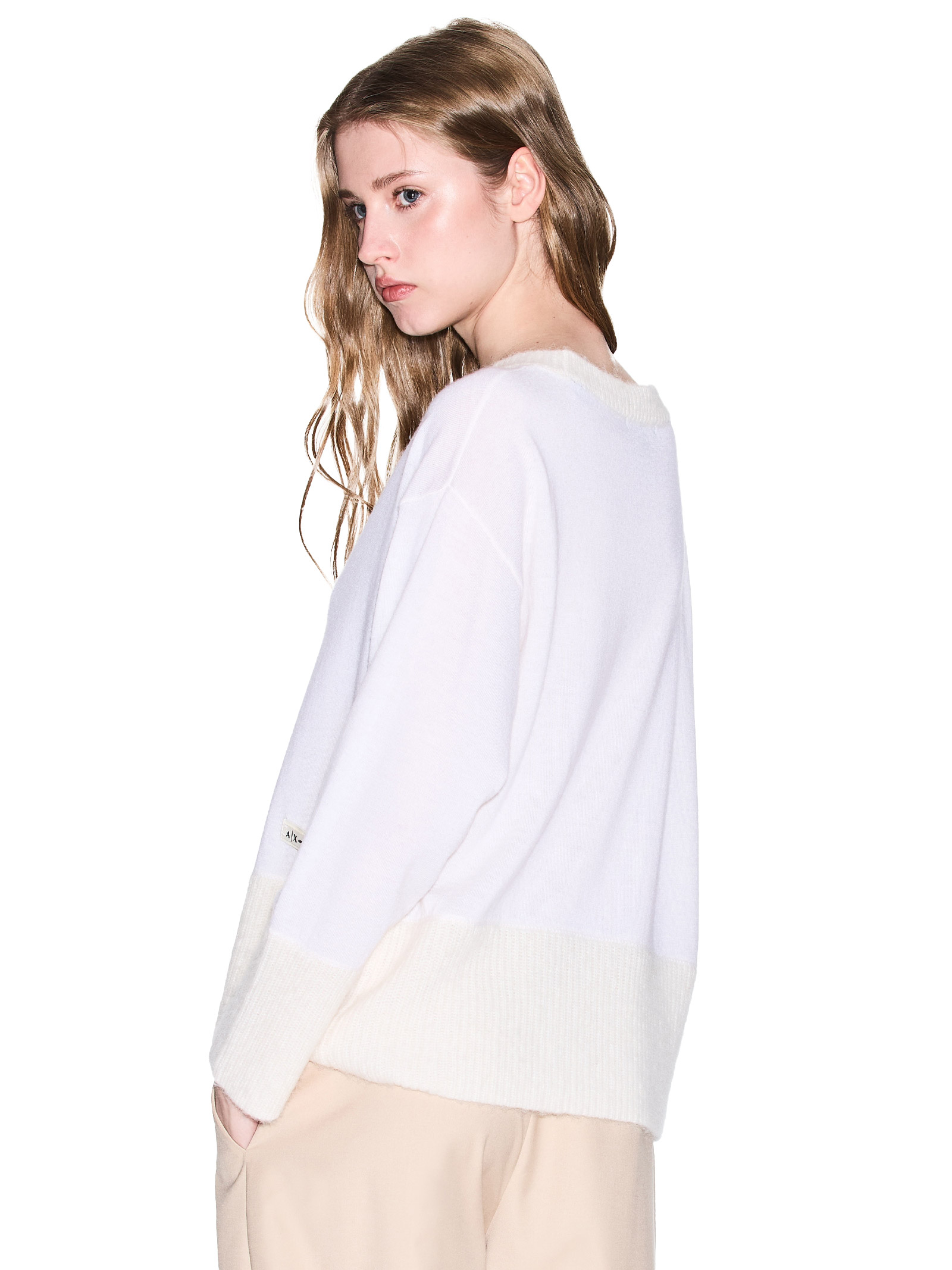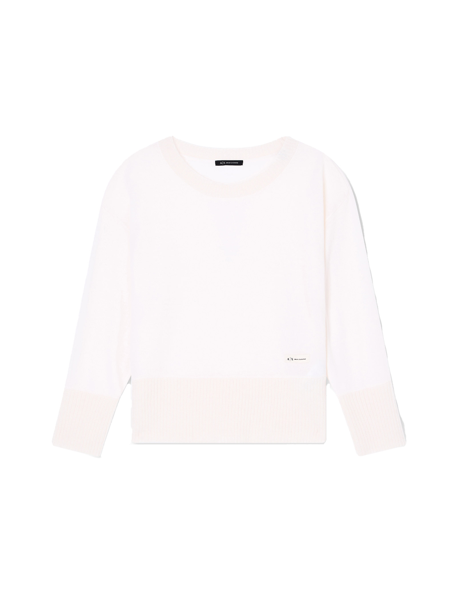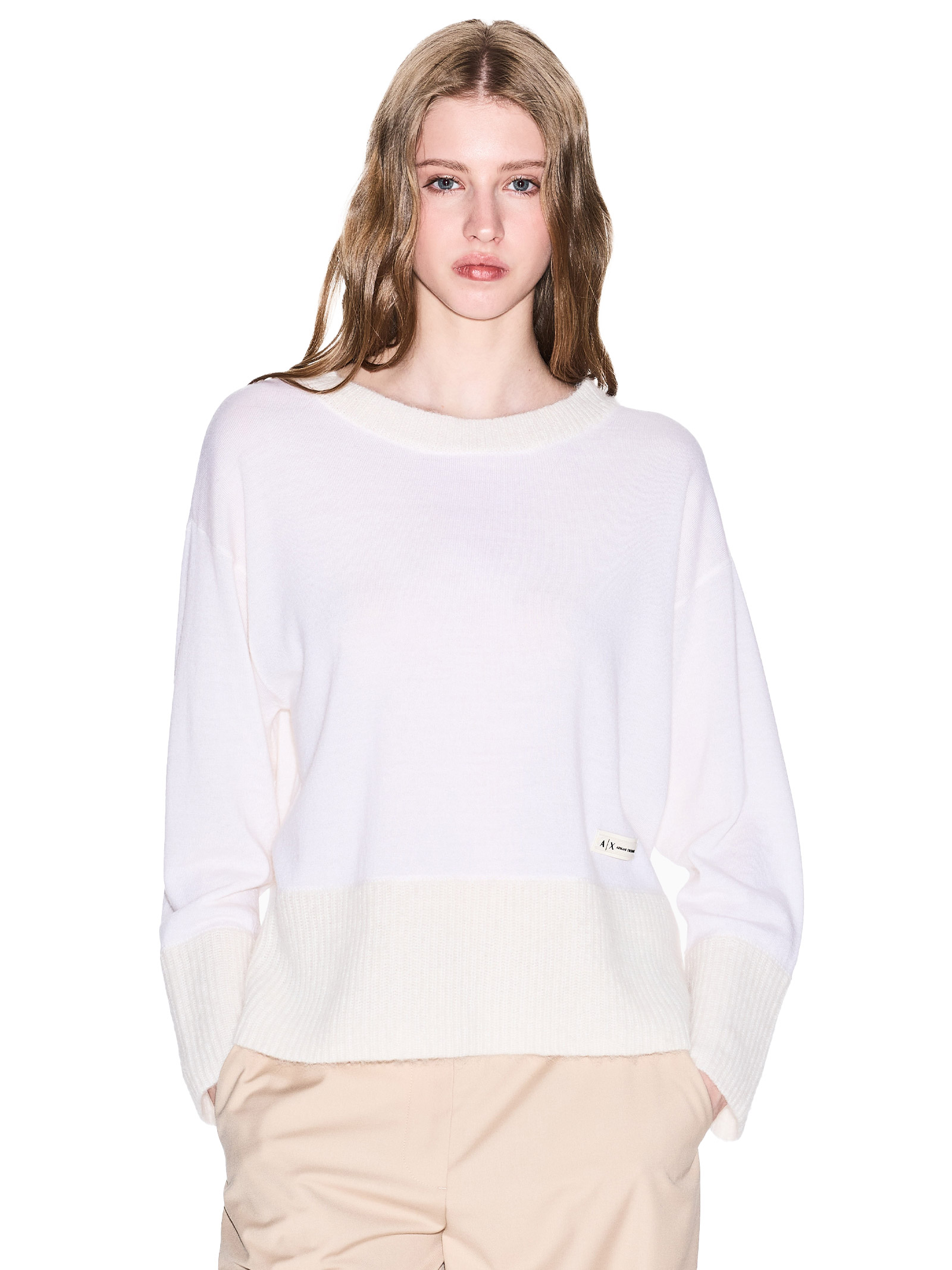 Design minimalista con lavorazione a coste a contrasto sul fondo e sui polsini.