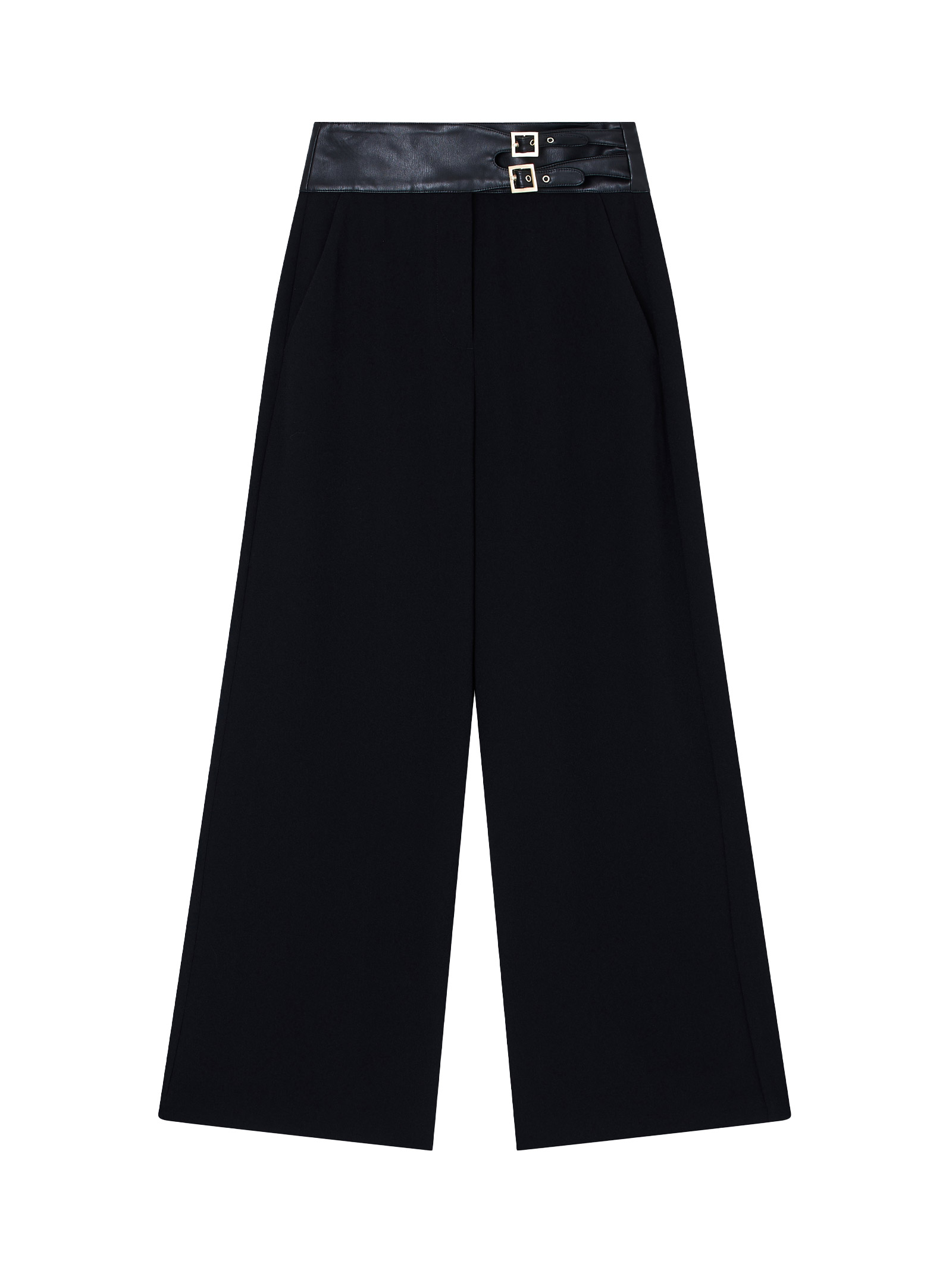 Pantaloni realizzati in un tessuto morbido e fluido, per una sensazione di comfort e un'eleganza raffinata. La silhouette a gamba larga conferisce un look elegante e contemporaneo, mentre la cintura con fibbia aggiunge un tocco distintivo e moderno.