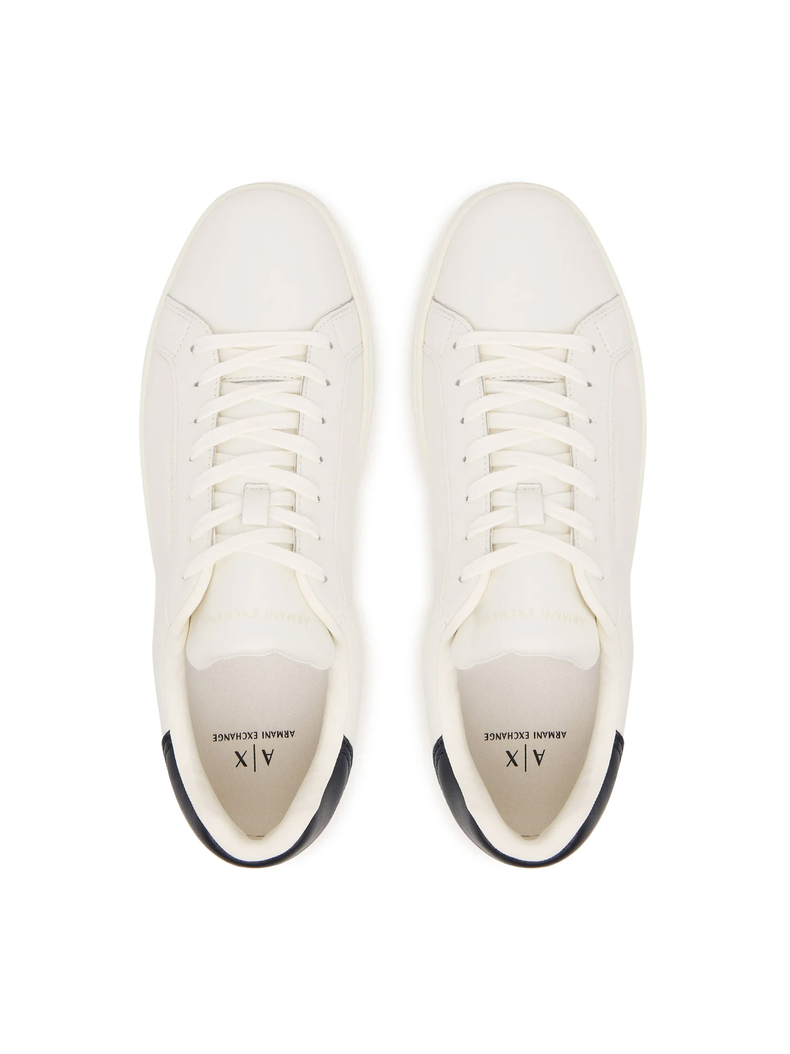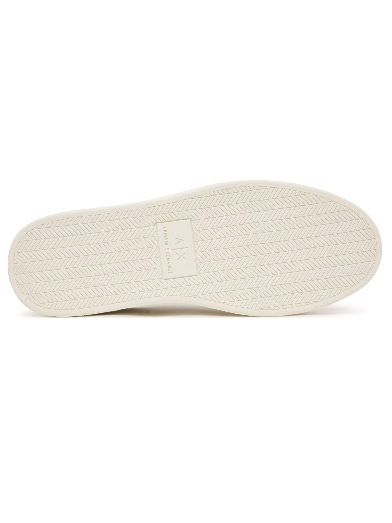 Il logo lettering laterale tono su tono valorizza la tomaia, mentre il talloncino blu a contrasto dona un tocco distintivo. La linguetta personalizzata con logo ARMANI EXCHANGE sottolinea la qualità artigianale del modello. Suola in gomma per massima stabilità e comfort durante l'uso quotidiano.