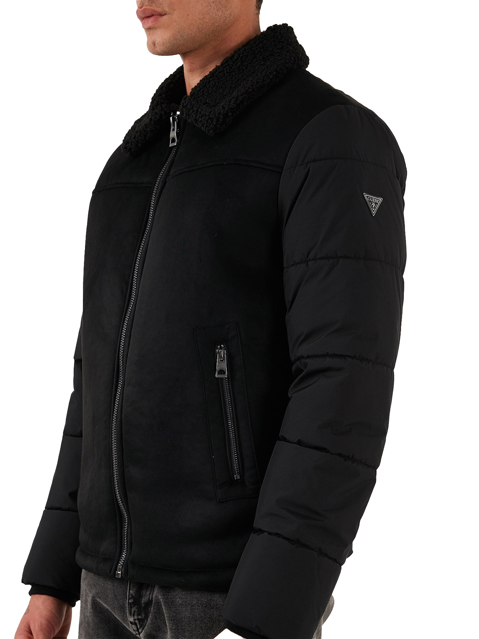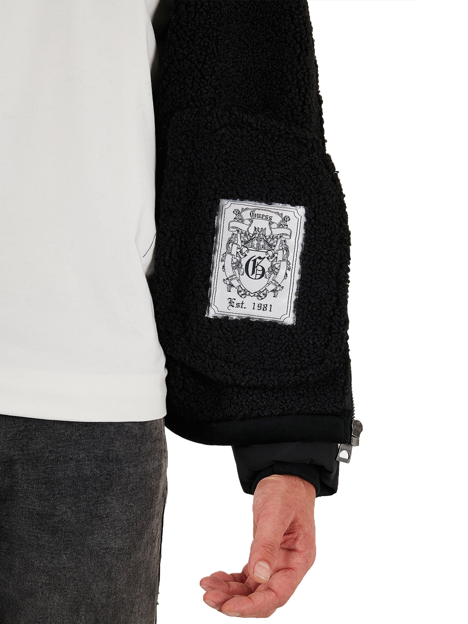 Giubbotto a cappotto con collo a cerniera e logo in shearling