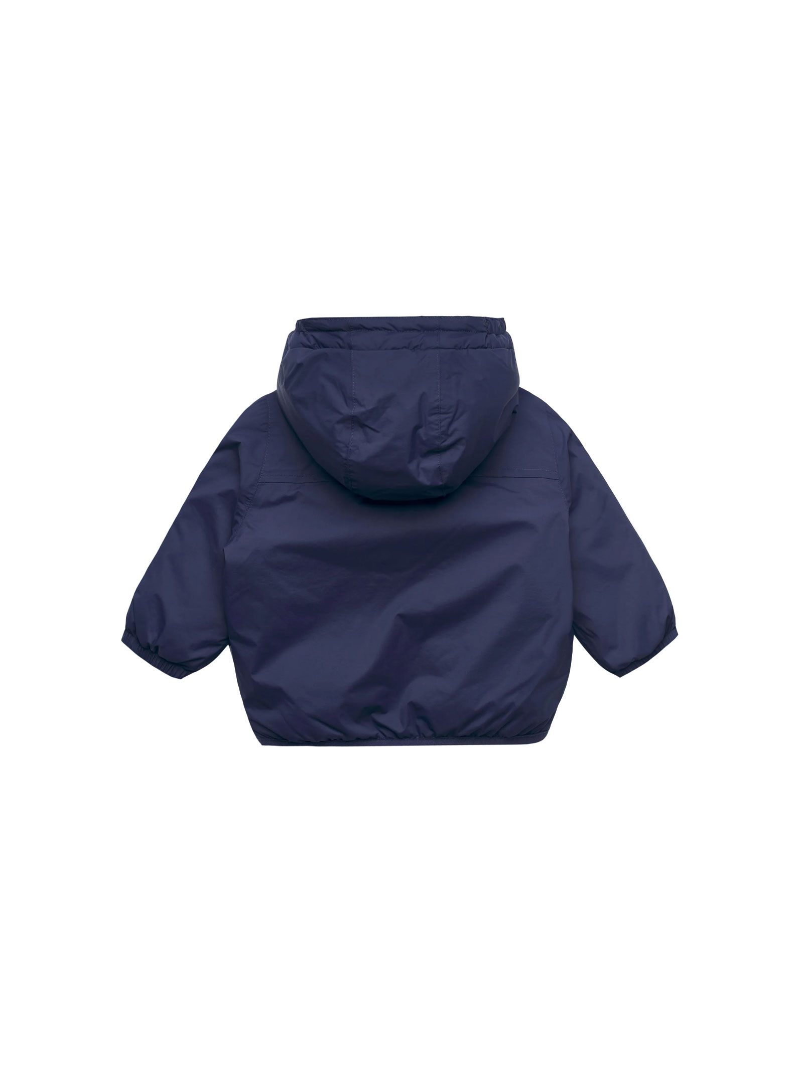 Giacca infant di lunghezza media e vestibilità regolare, realizzato in tessuto nylon. Ripstop imbottito, idrorepellente, traspirante, antivento e termosaldato. Il capo ha una fodera in Orsetto che ricopre tutta la parte interna. È dotato di chiusura full zip K-Way con puller nero e sotto-zip antivento e il cappuccio può essere regolato , polsi con elastico Dettagli personalizzati K-Way di colore nero: ganci marsupio e stopper coulisse. QR label interna e logo K-Way stampato. - Unisex - Tessuto nylon ripstop impermeabile ,idrorepellente, antivento, traspirante - Fodera in pelliccia ecologica - Imbottitura ovatta peso medio - Cuciture termo nastrate - Cappuccio - Chiusura con zip - Patta interna antivento - Polsi con elastico - Fondo giacca con elastico - Fitting regolare - Logo stampato colorato