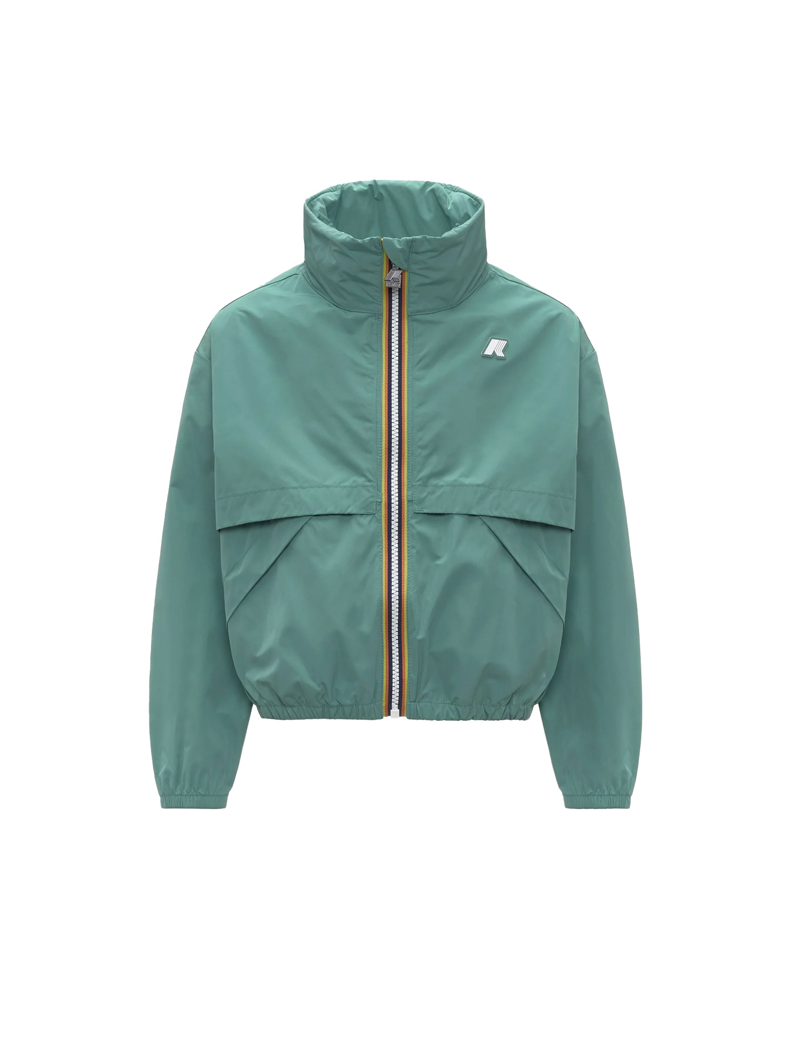 Aubette è una giacca corta da bambina, con un design che omaggia lo spirito sportivo del brand grazie al tessuto dalla finitura liscia e gommata e al taglio crop con dettagli voluminosi come maxi tasche e maxi flap sul fronte. La giacca presenta chiusura con zip nei colori K-Way, collo alto, polsi elastici e vita regolabile con coulisse.
