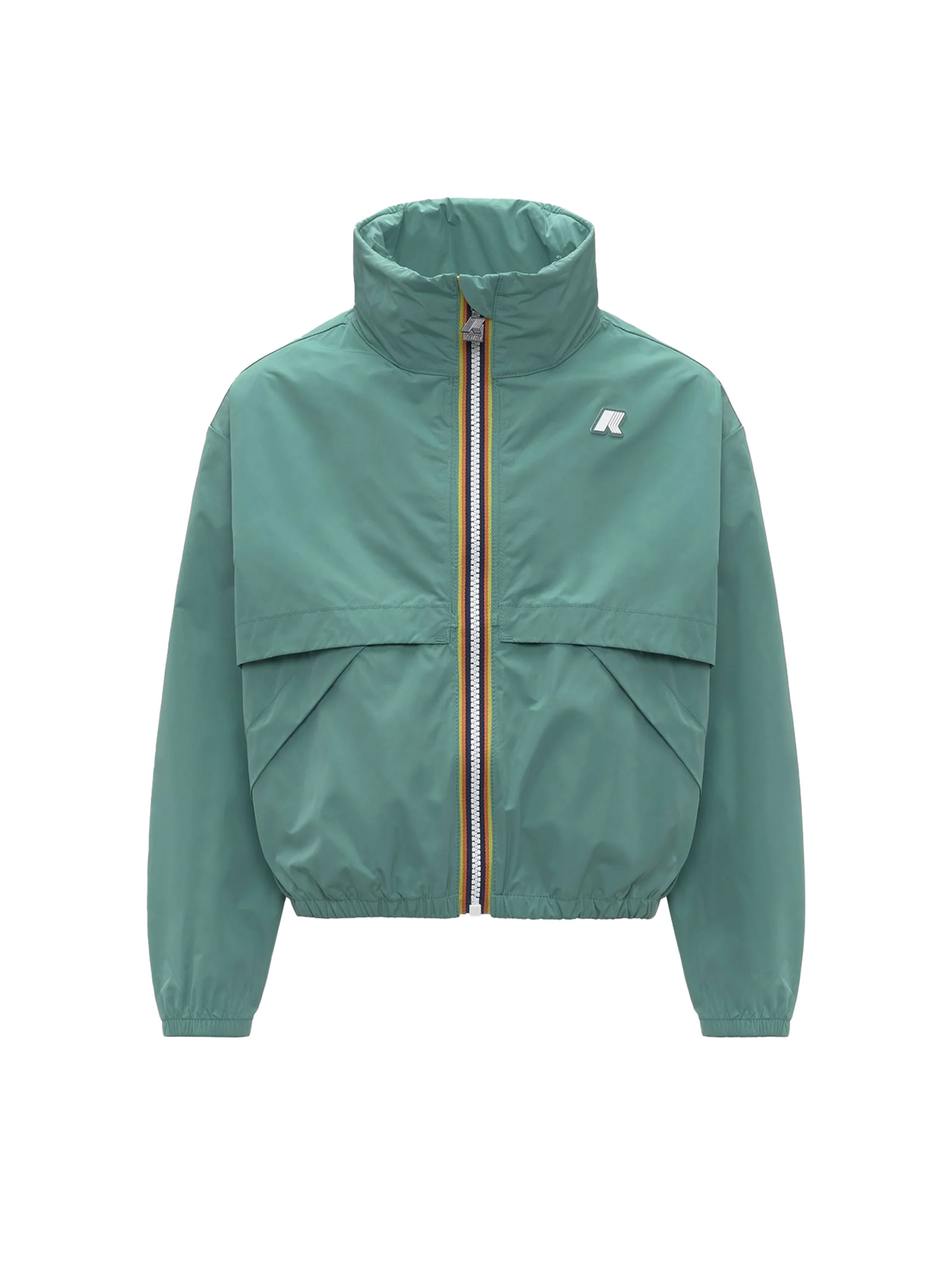 Aubette è una giacca corta da bambina, con un design che omaggia lo spirito sportivo del brand grazie al tessuto dalla finitura liscia e gommata e al taglio crop con dettagli voluminosi come maxi tasche e maxi flap sul fronte. La giacca presenta chiusura con zip nei colori K-Way, collo alto, polsi elastici e vita regolabile con coulisse.
