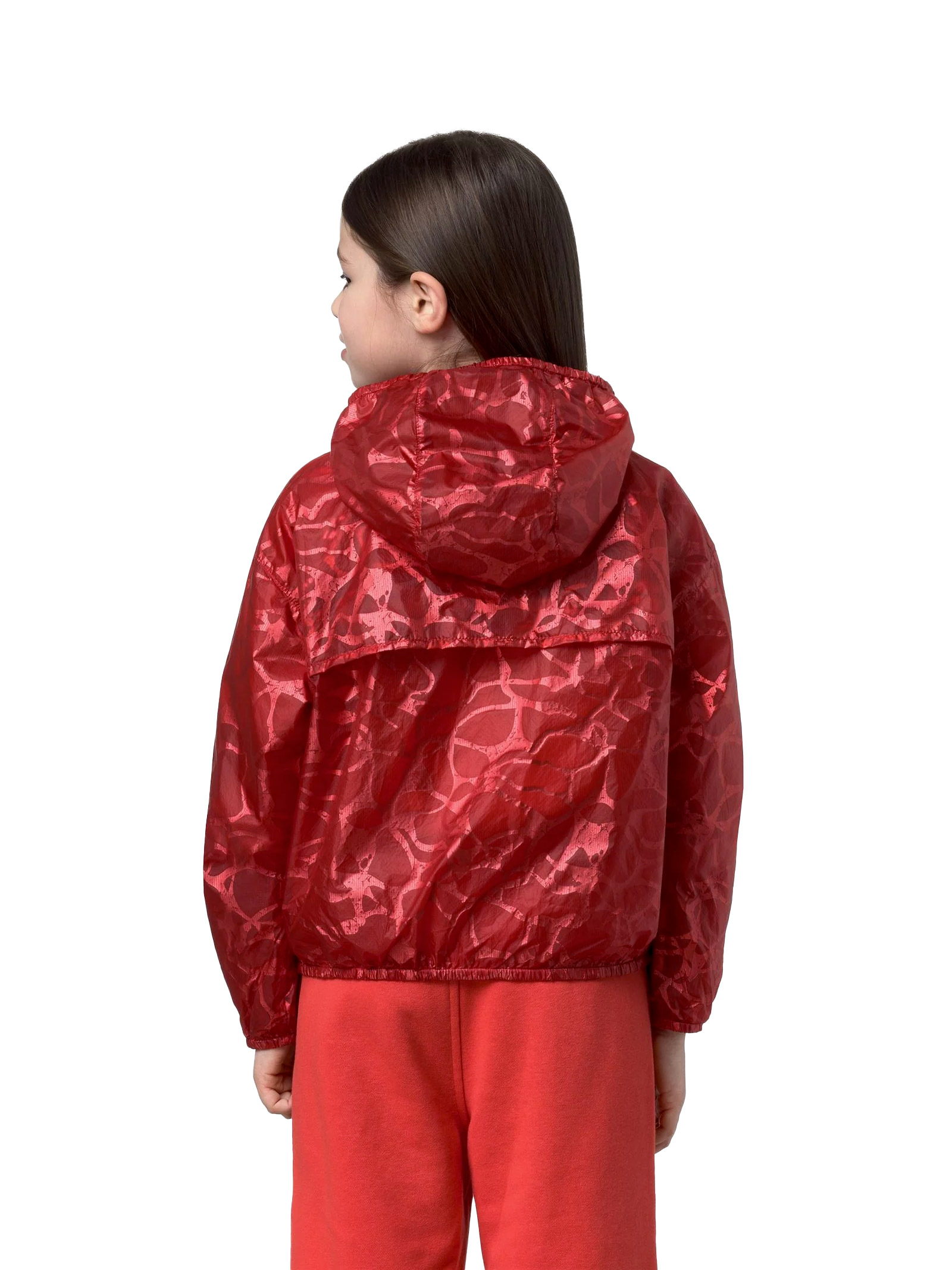 Laurette è una giacca corta da Bambina ideale per le stagioni più miti. Il design reversibile gioca con i contrasti tra texture e trasparenze: un lato è in tessuto superleggero semitrasparente, laltro in nylon con una grafica a laminatura metallica ispirata ai riflessi del sole sullacqua increspata. Quando indossata dal lato superlight, la grafica sottostante emerge in trasparenza creando un effetto cangiante.