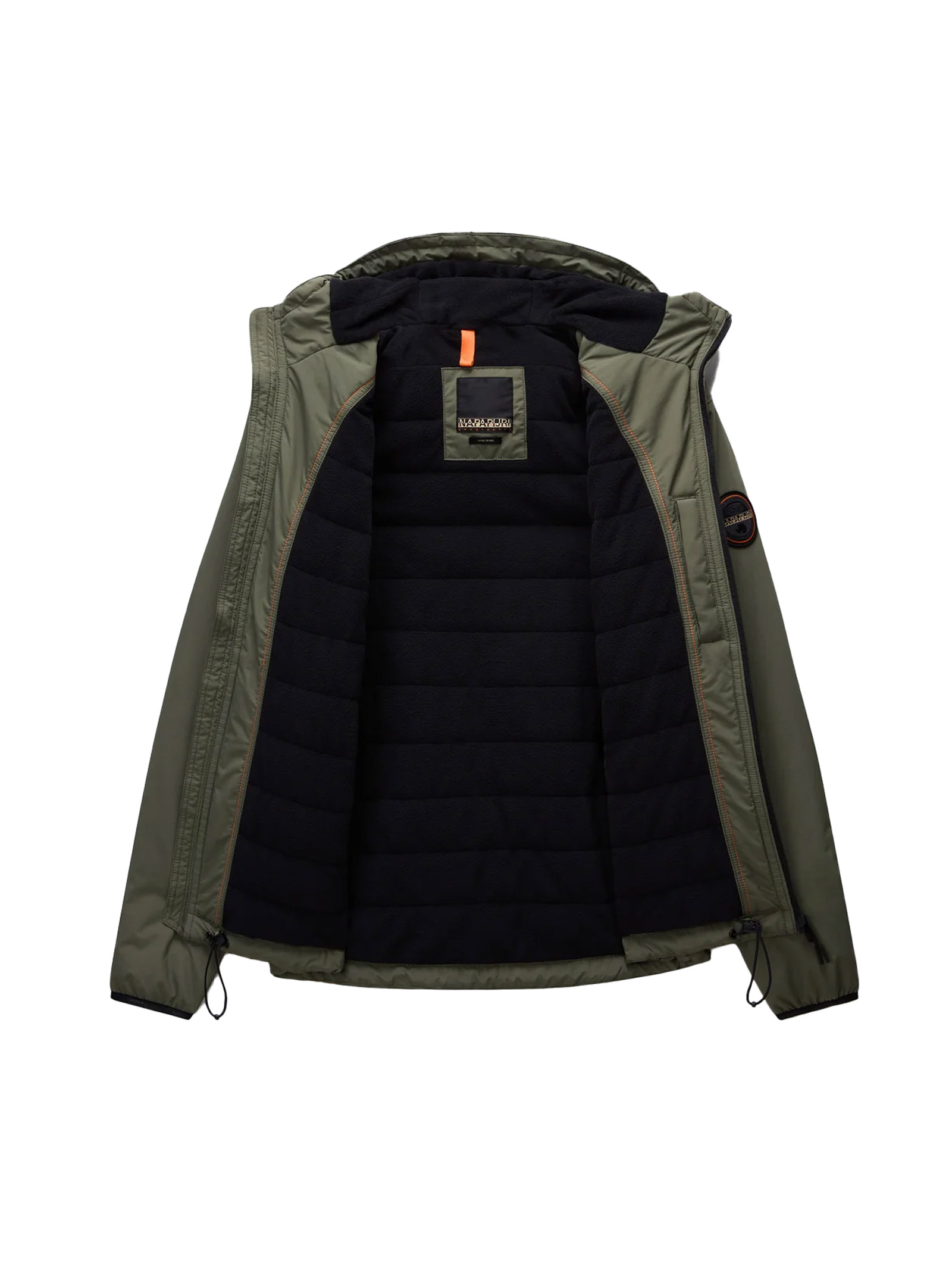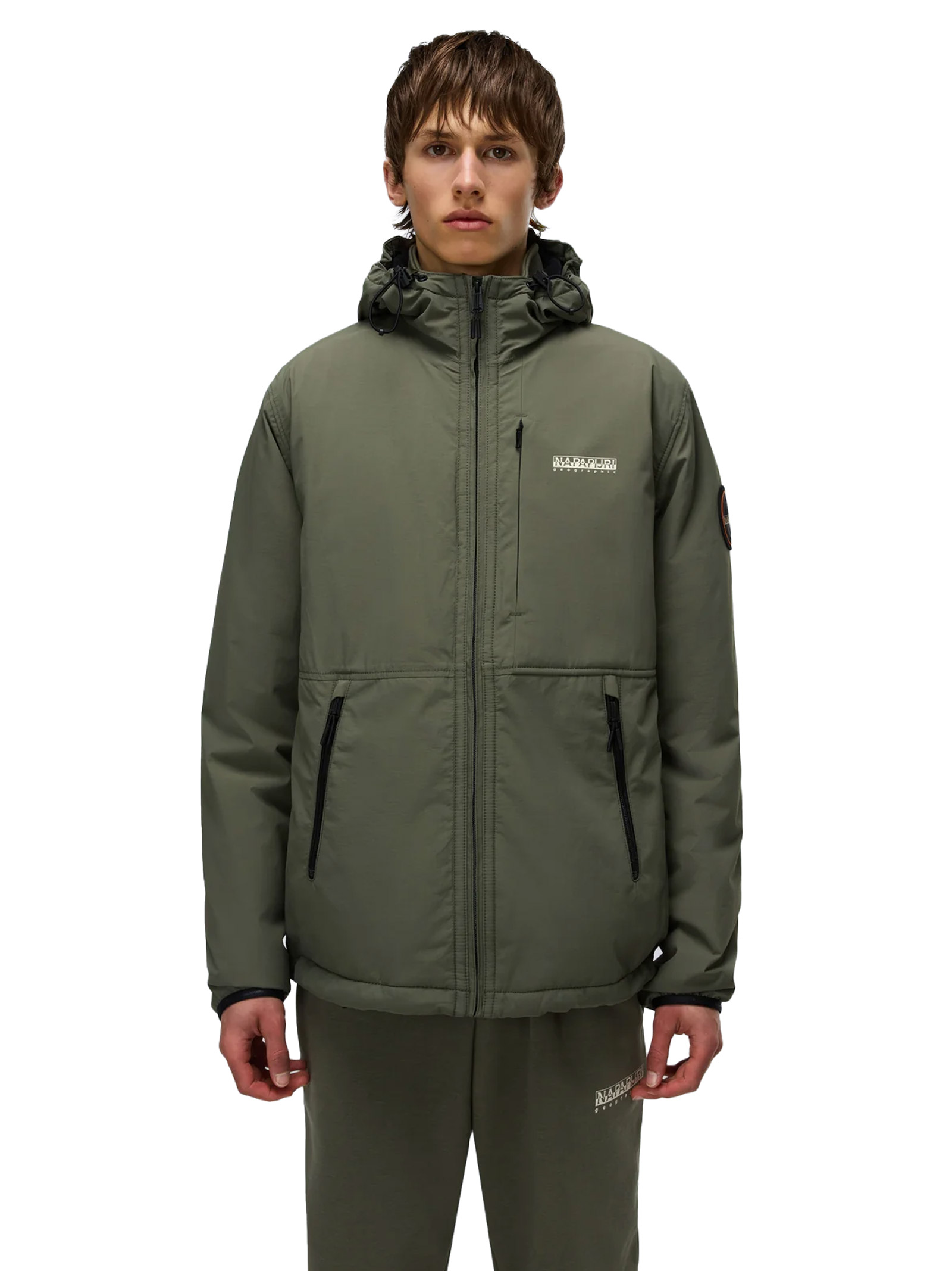 Resistente a vento leggero e neve, la giacca Tundra Winter è progettata con imbottitura in poliestere 100% riciclata, per un isolamento termico ottimale. Linterno del cappuccio e parte del busto sono foderati in caldo pile, per un comfort superiore. Completano il design cappuccio regolabile, tasche laterali con zip, taschino sul petto con zip e distintivi dettagli Napapijri.
