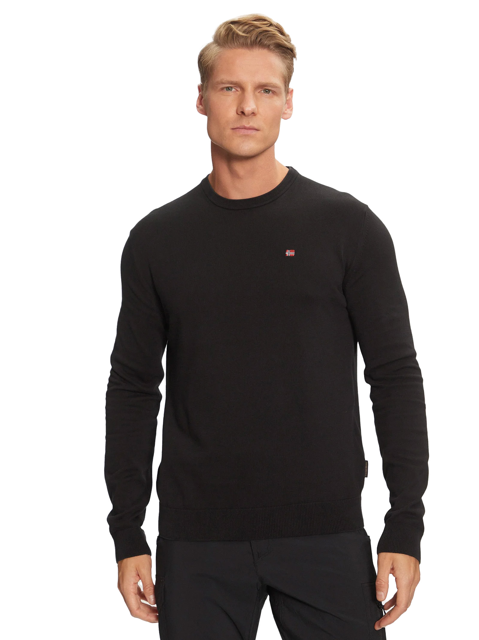 Rivisitato con un nuovo tessuto tinto in capo, il maglione Droz ha un aspetto raffinato per outfit casual ed eleganti. Ideato per le giornate più fresche, in 100% cotone, presenta girocollo, dettagli a costine e una piccola bandiera norvegese ricamata sul petto.