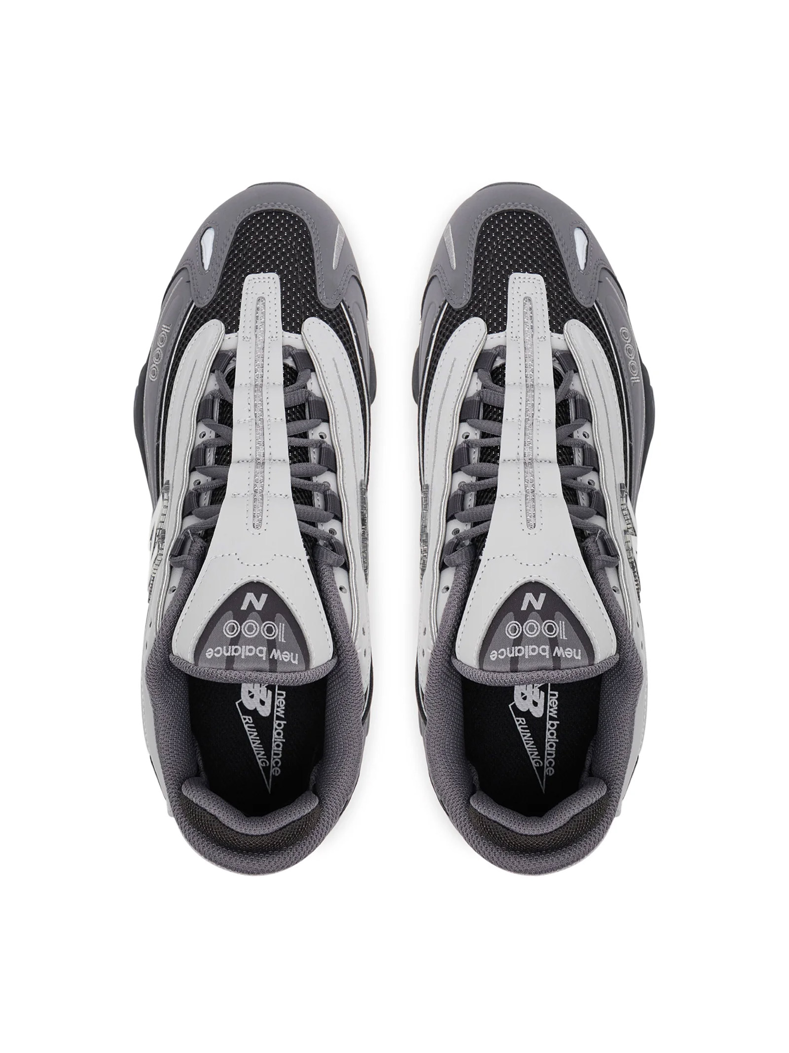 Il rilancio delle 1000 fa uscire dagli archivi un classico di fine millennio. Lanciate originariamente nel 1999, le 1000 incarnavano lo stile audace e futuristico dell'epoca con un design semplice ma ricco di dettagli. Il design standard della tomaia in mesh e dei rivestimenti in suede è invertito, con strati in mesh che emergono dai pannelli di rivestimento più sporgenti, per un look raffinato e ispirato alla tecnologia. La suola segmentata presenta un'ammortizzazione ABZORB nel tallone e nell'avampiede, con un supporto Stability Web nella parte centrale del piede.