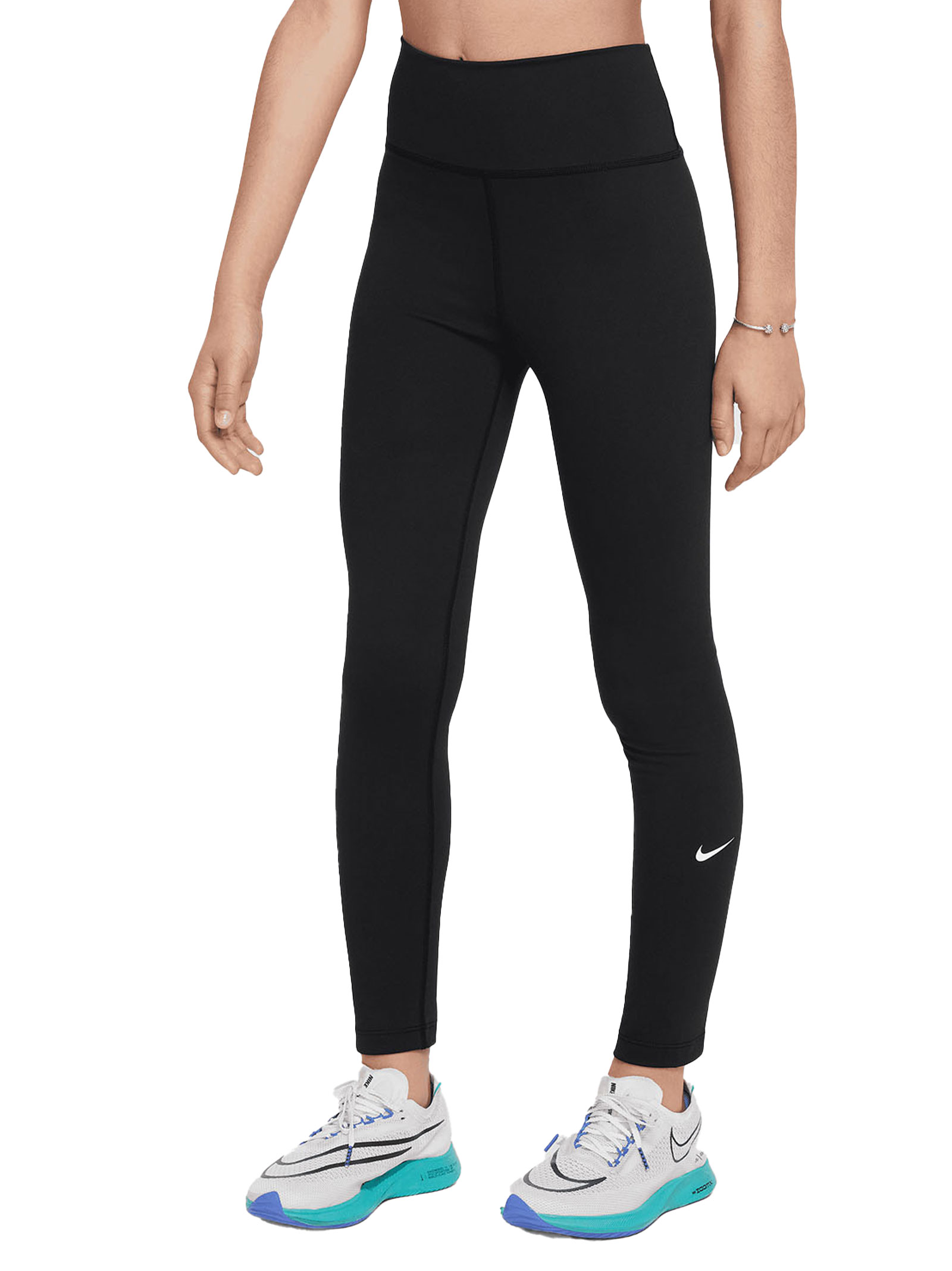 Fatti avvolgere dai tights per bambina Nike One Swoosh. Dal tessuto traspirante ed elasticizzato, ti accompagneranno in ogni tuo movimento sul campo in piena comodità.