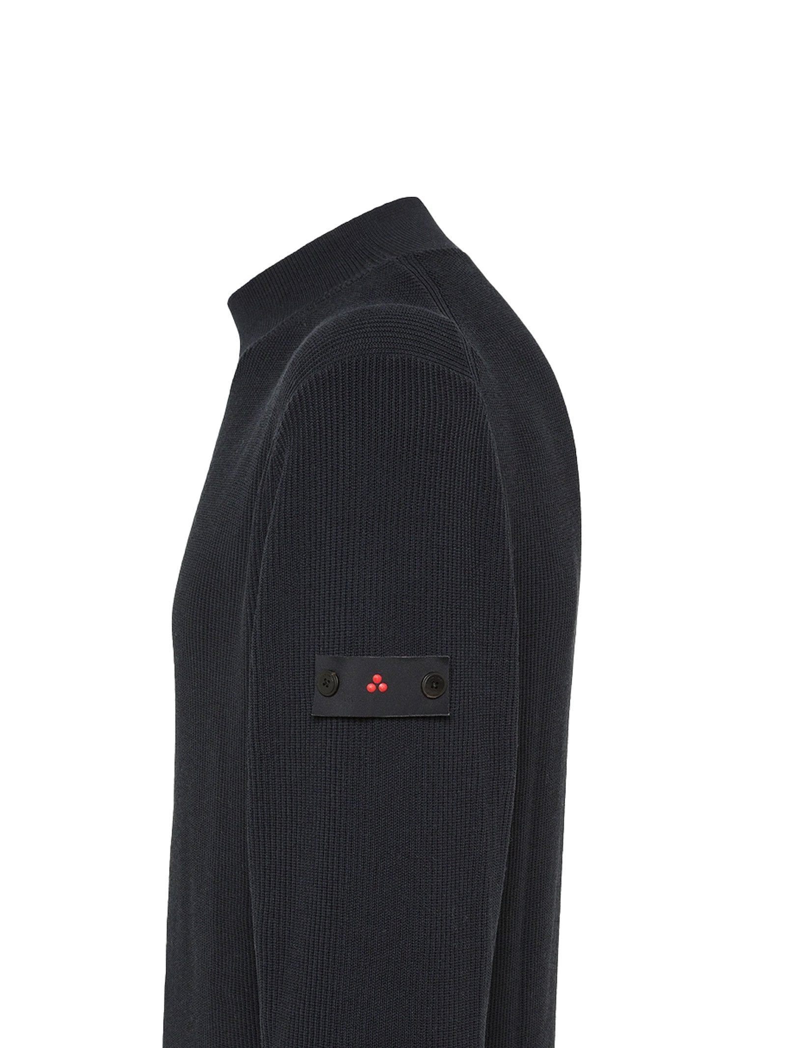 Maglia a lupetto in tricot di cotone, lavorata a costa inglese. La maglia inglese, nota anche come "fisherman's rib", è una tecnica di lavorazione che crea un tessuto più spesso e più elastico rispetto alla maglia standard, con un raffinato effetto tridimensionale. Il design essenziale è completato da collo, polsini e fondo a coste, per una vestibilità confortevole e definita. La personalizzazione con logo Peuterey trilogy, simbolo iconico del brand, è applicata con discrezione sul braccio sinistro con due bottoncini. Un capo classico ed versatile, impreziosito dalla particolare lavorazione del tessuto, perfetto per arricchire il guardaroba con un tocco di eleganza contemporanea.