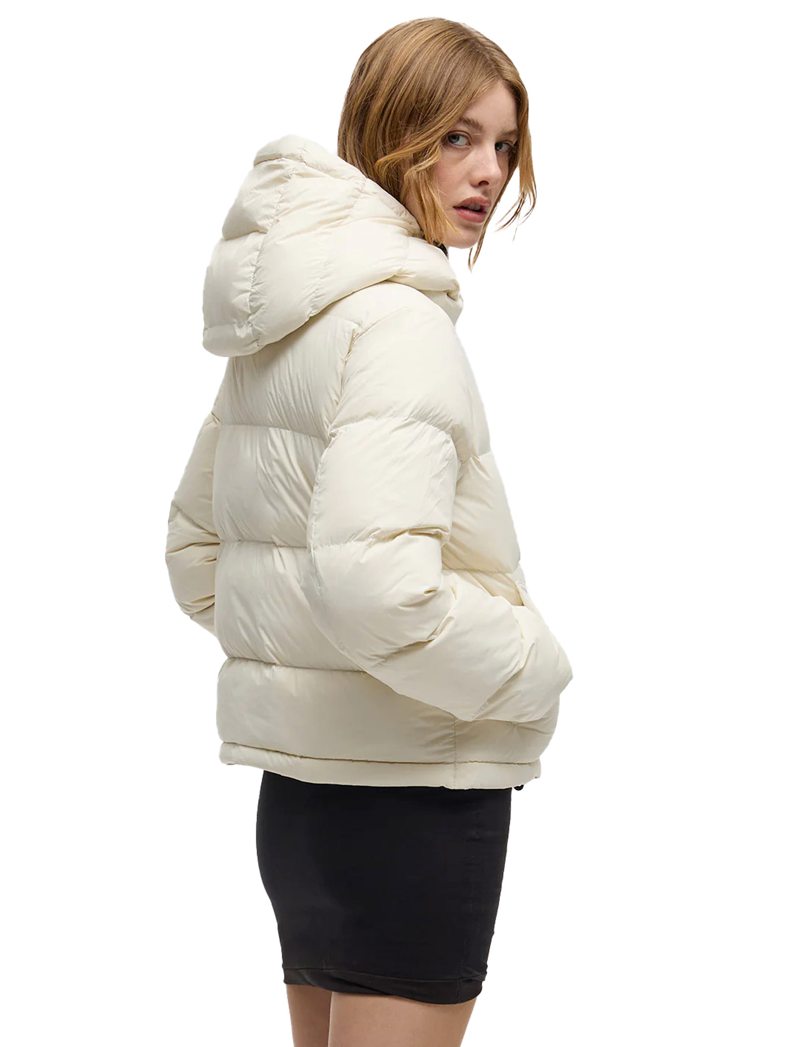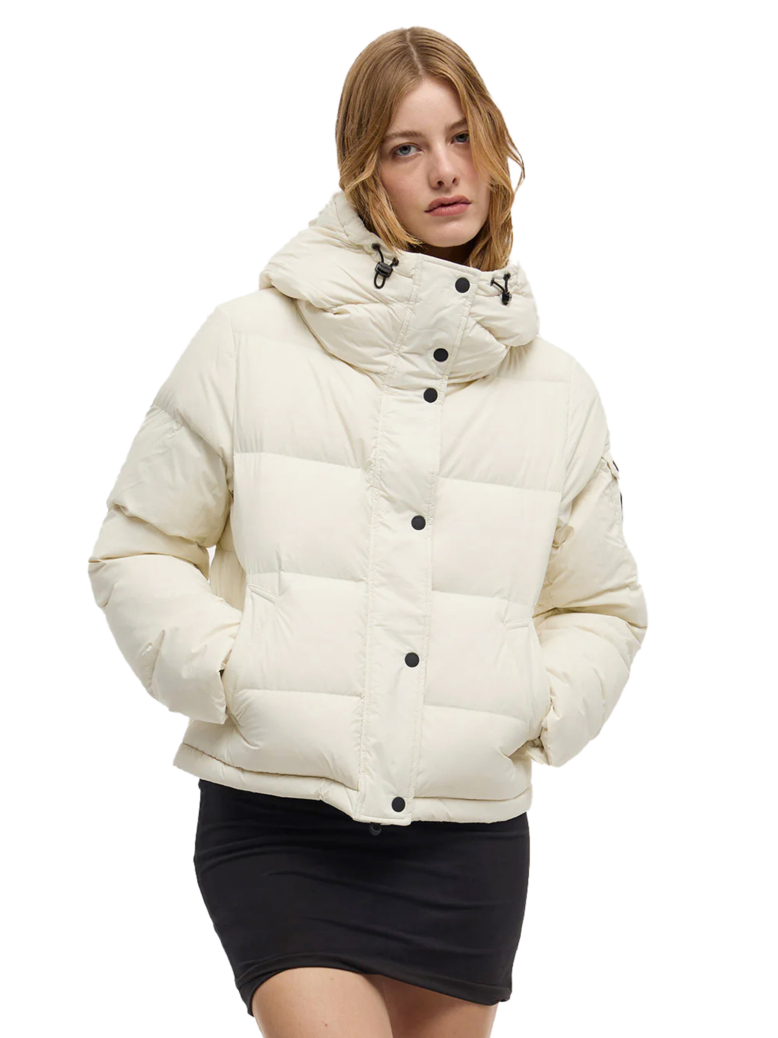Il Braffy Jacket è un piumino invernale da donna che combina uno stile moderno con forme leggermente ampie e femminili. Il guscio esterno, realizzato in nylon opaco, è morbido e piacevole al tatto, mentre l'interno, foderato in nylon traspirante, è dotato di imbottitura 100% piuma 90-10 RDS (Responsible Down Standard), che offre un feeling ultra-light e garantisce un'elevata protezione dal freddo. Caratterizzato da un cappuccio regolabile con coulisse, due comode tasche frontali a filetto, chiusura frontale con zip e pattina protettiva con bottoni, tasca interna e patch logo applicato sulla manica, il Braffy Jacket è un capo versatile e ricercato, perfetto per completare i tuoi outfit invernali con eleganza e funzionalità. Aggiungi il Braffy Jacket al tuo guardaroba per affrontare l'inverno con stile.