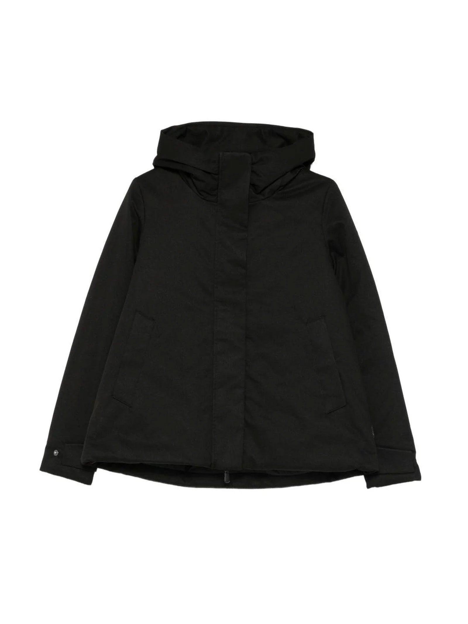 Giacca nera 'Lua' di Save The Duck con cappuccio classico, chiusura frontale con zip, tasche laterali con patta, polsini con bottoni e orlo dritto. Realizzata con materiali innovativi e completamente animal-free, è un capo versatile che unisce sostenibilità, comfort e uno stile urbano senza tempo