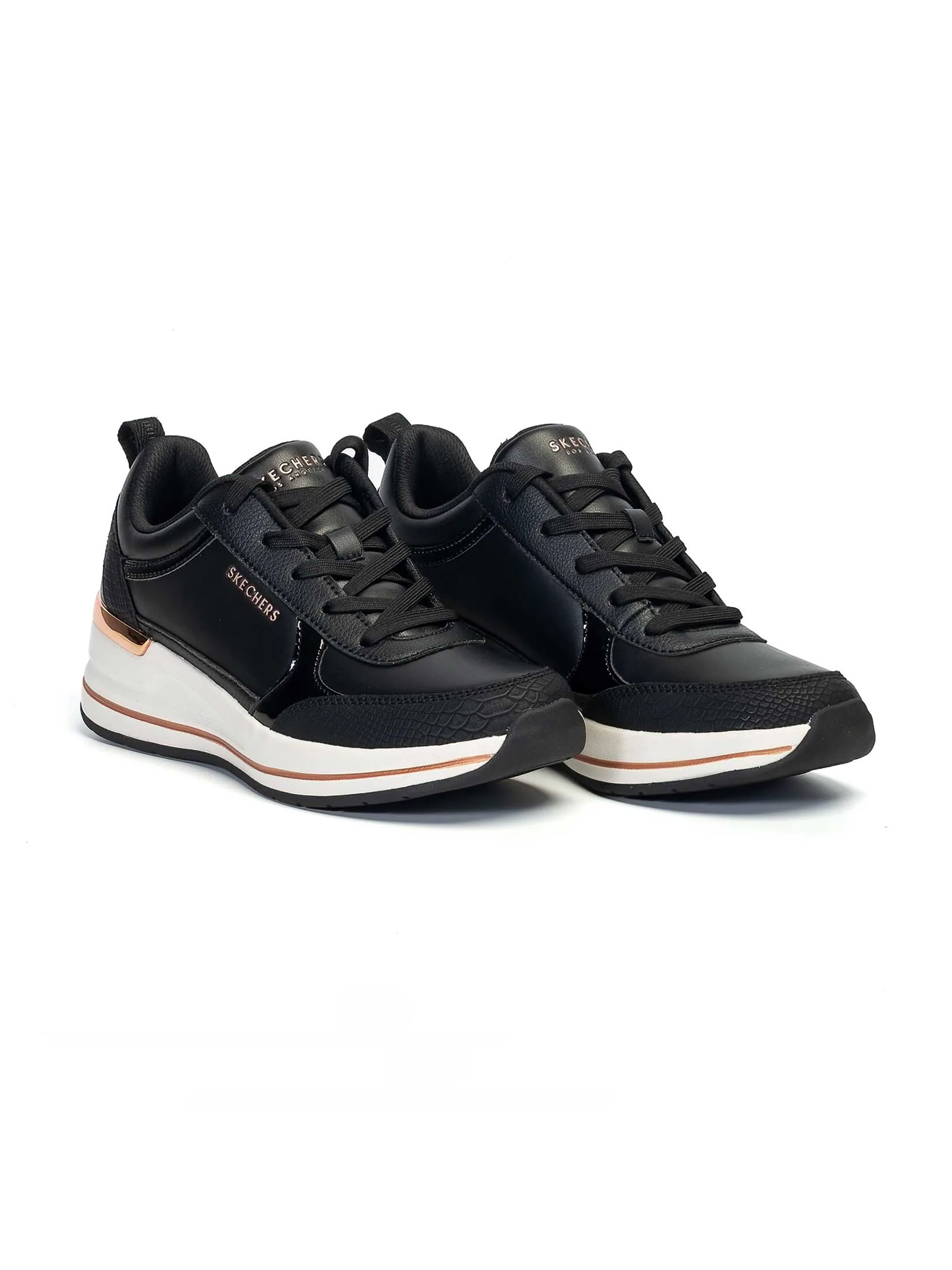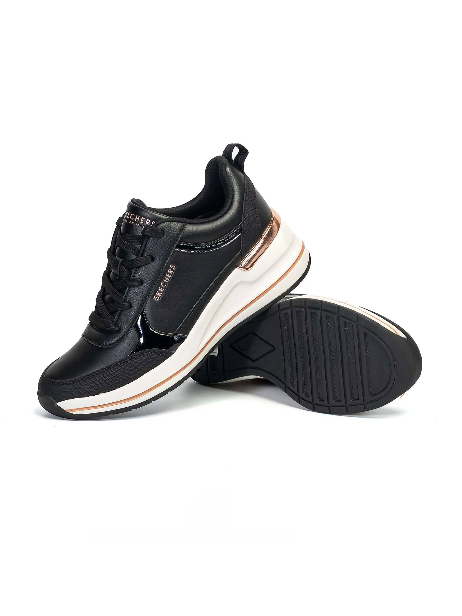 Scarpa sneakers da donna Skechers Billion 2 Fine Shine, realizzate con materiali vegan al 100%. La comoda soletta ammortizzata Skechers Air-Cooled Memory Foam® garantisce il massimo comfort. La tomaia in materiale duraleather sintetico e le finiture metalliche sul tallone aggiungono un tocco di stile. La comoda zeppa e la suola flessibile offrono trazione e stabilità. Con l'altezza del tallone di 5 cm e il logo Skechers®, sono perfette per ogni occasione.