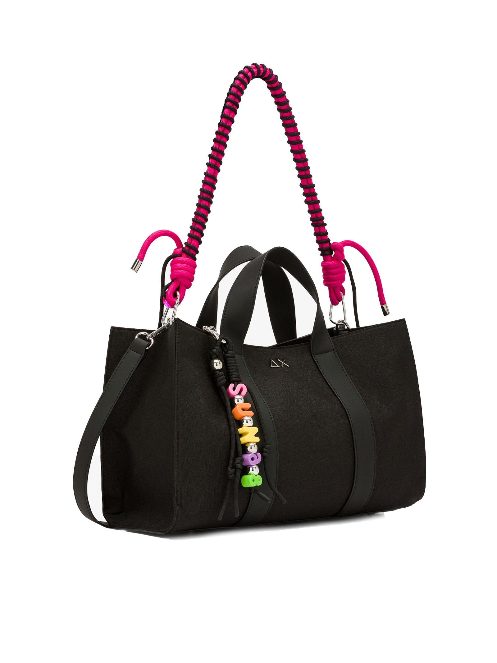 La borsa SUN68 gioca con vivaci combinazioni di colori e un design spazioso e contemporaneo, in linea con le tendenze. Dall'energia dei manici intrecciati alla lucentezza dei dettagli con logo, ogni elemento riflette un approccio distintivo allo stile. Si abbina perfettamente alle sneaker della collezione, trasformando i look quotidiani in vere e proprie dichiarazioni di stile.