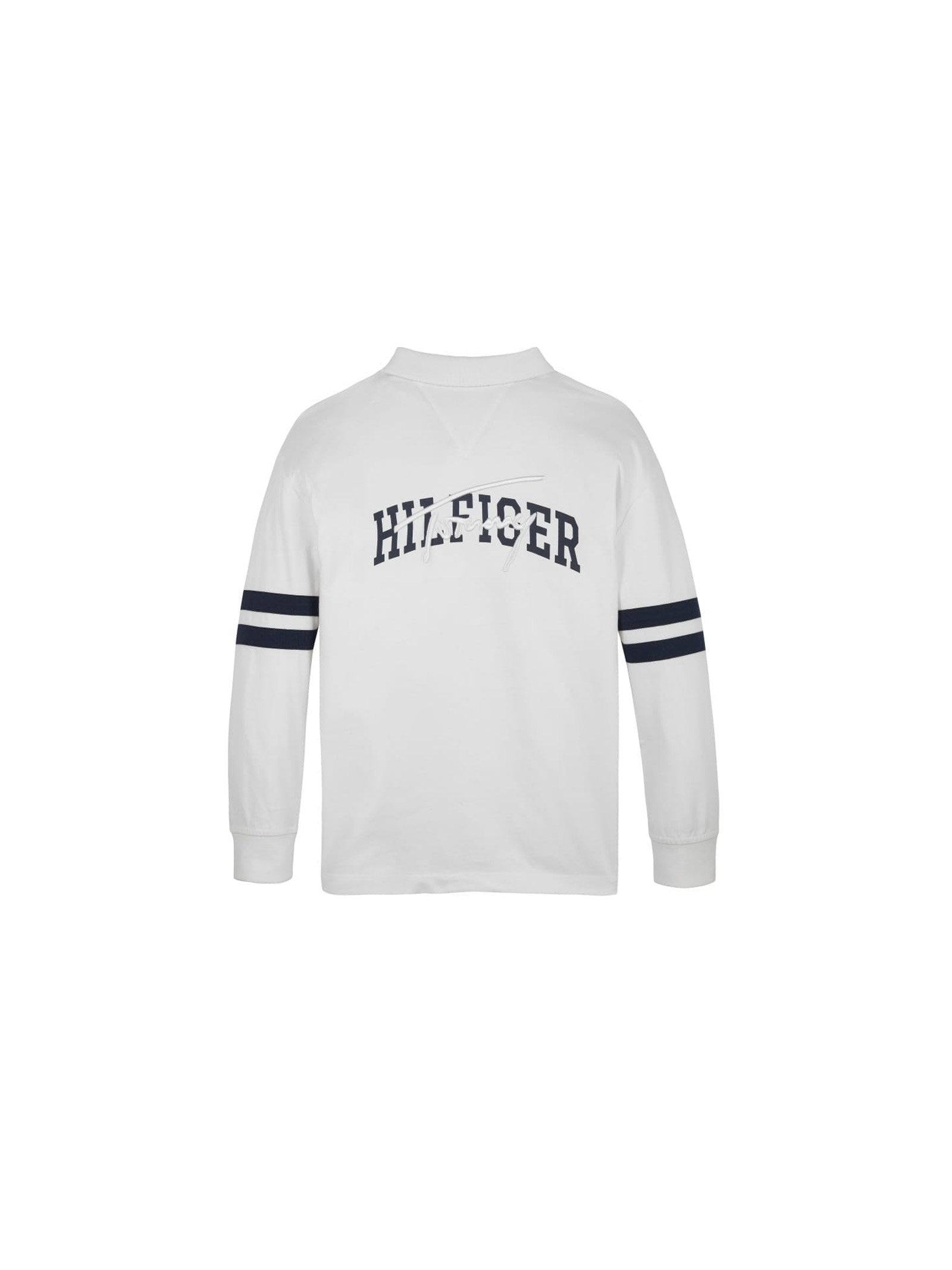La polo a maniche lunghe è ravvivata dai dettagli a righe sportivi, mentre il mix di loghi sul retro aggiunge un tocco di stile.